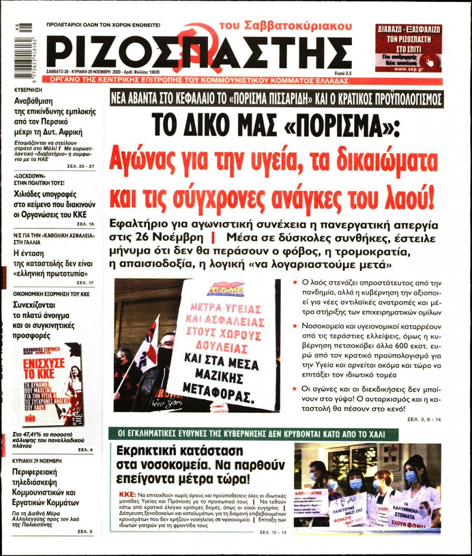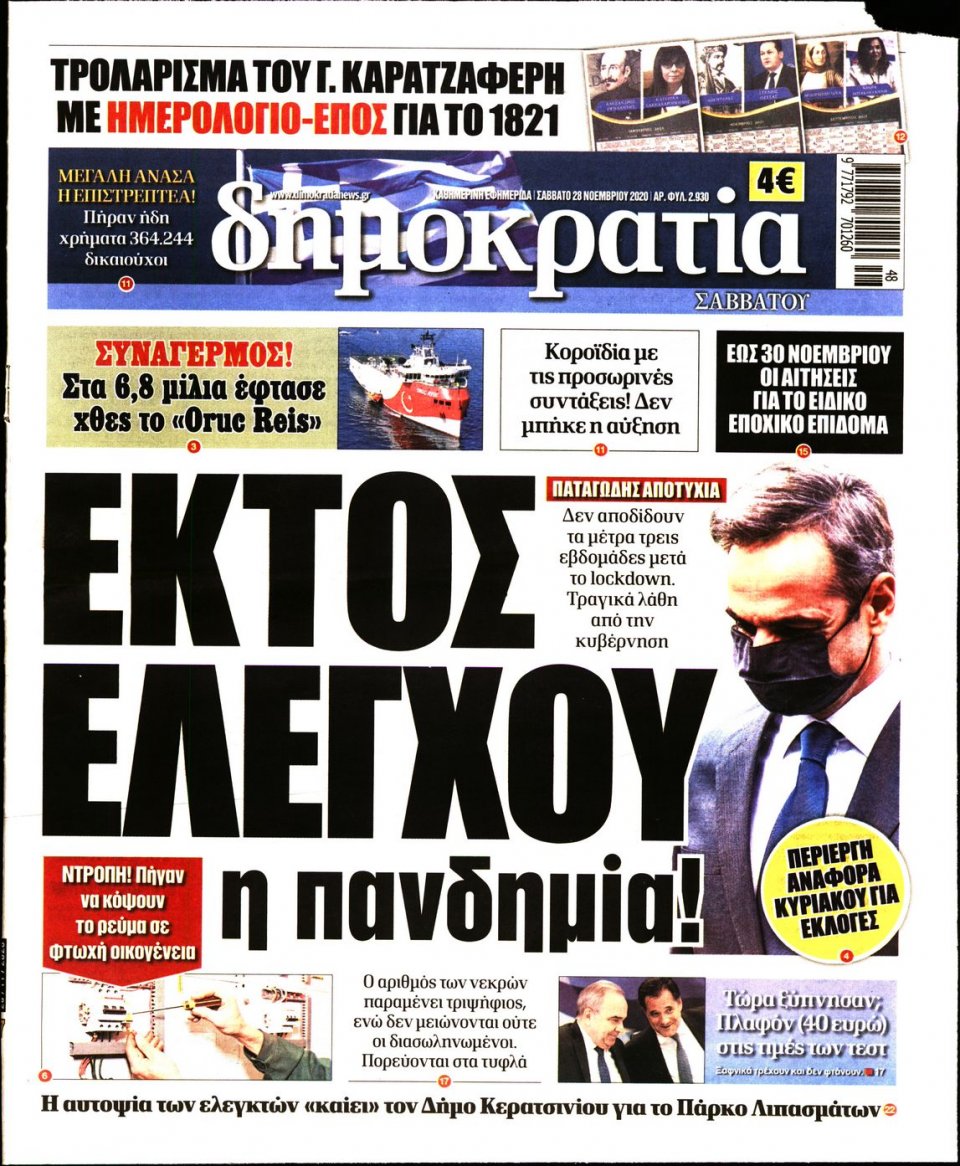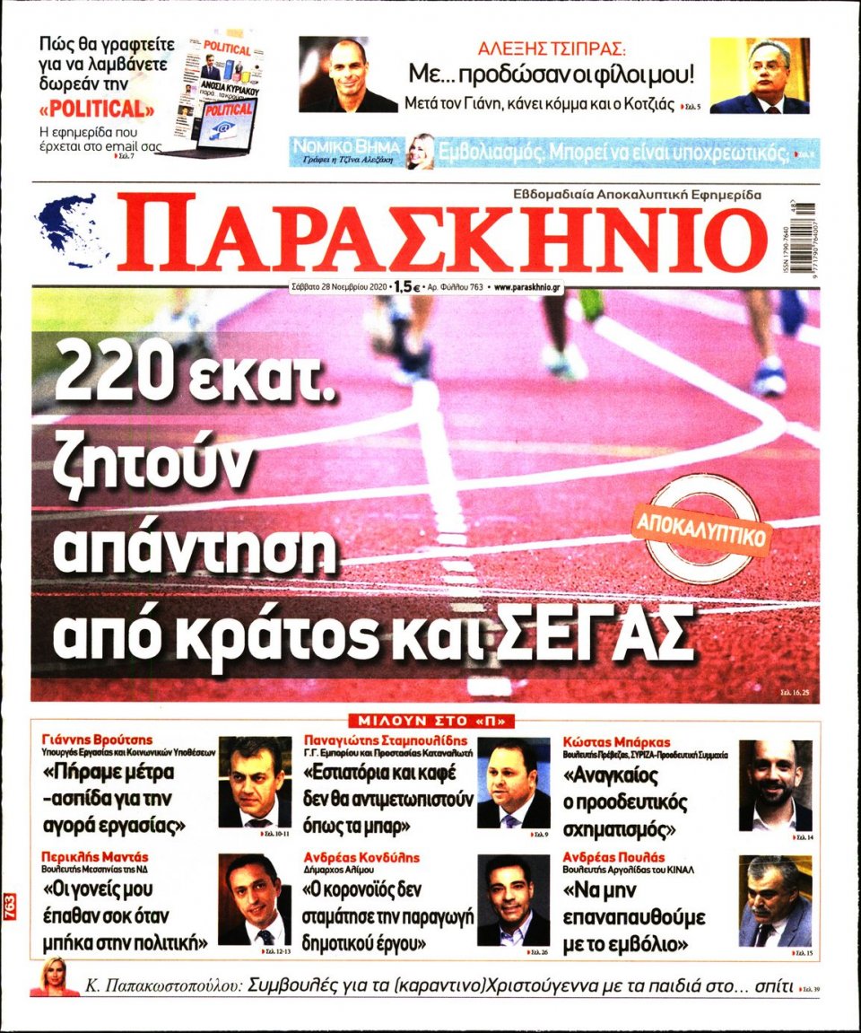 Τα πολιτικά πρωτοσέλιδα σήμερα (28/11)