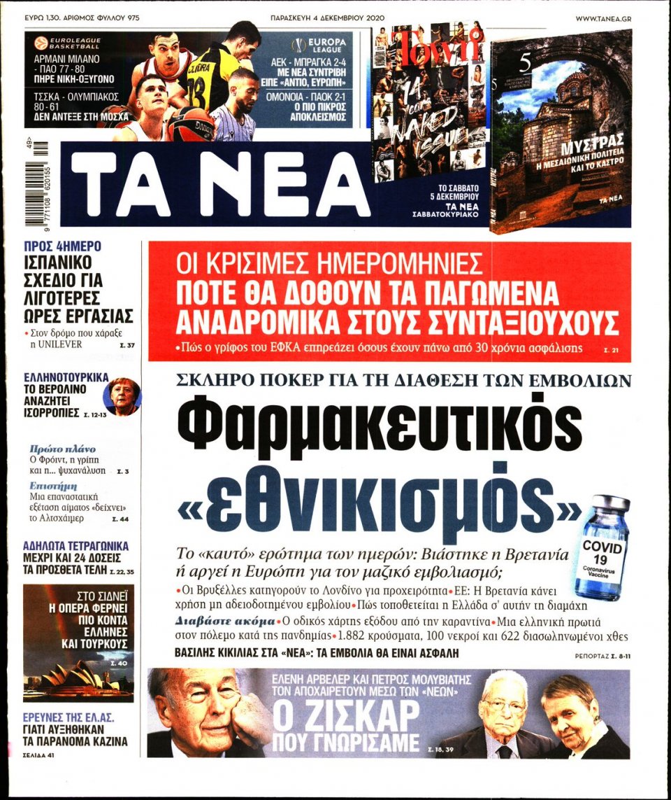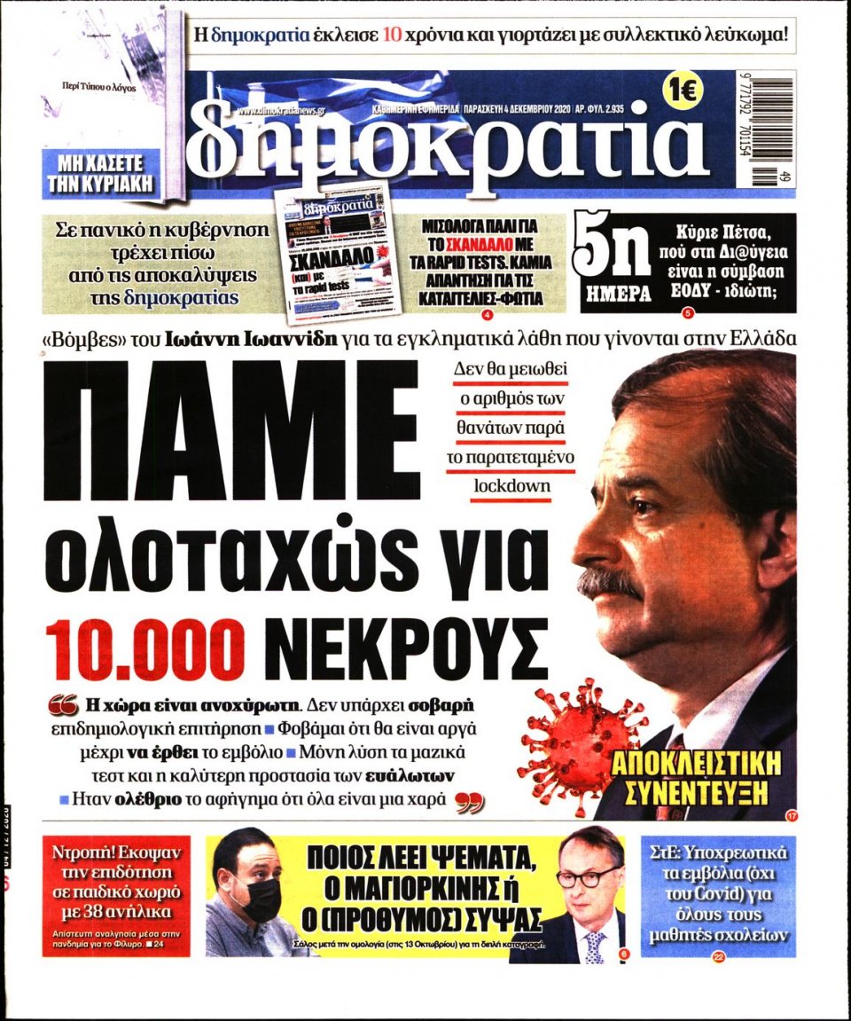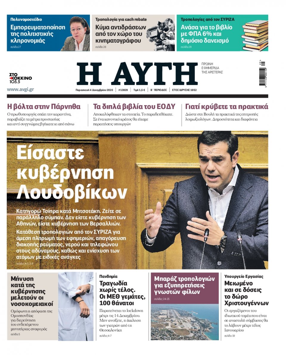 Τα πολιτικά πρωτοσέλιδα σήμερα (4/12)