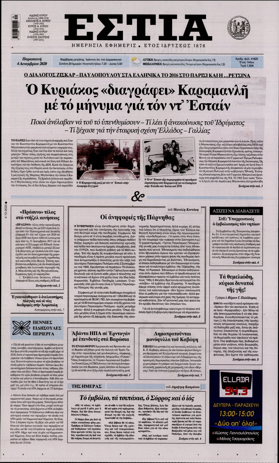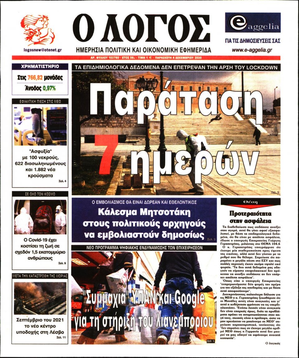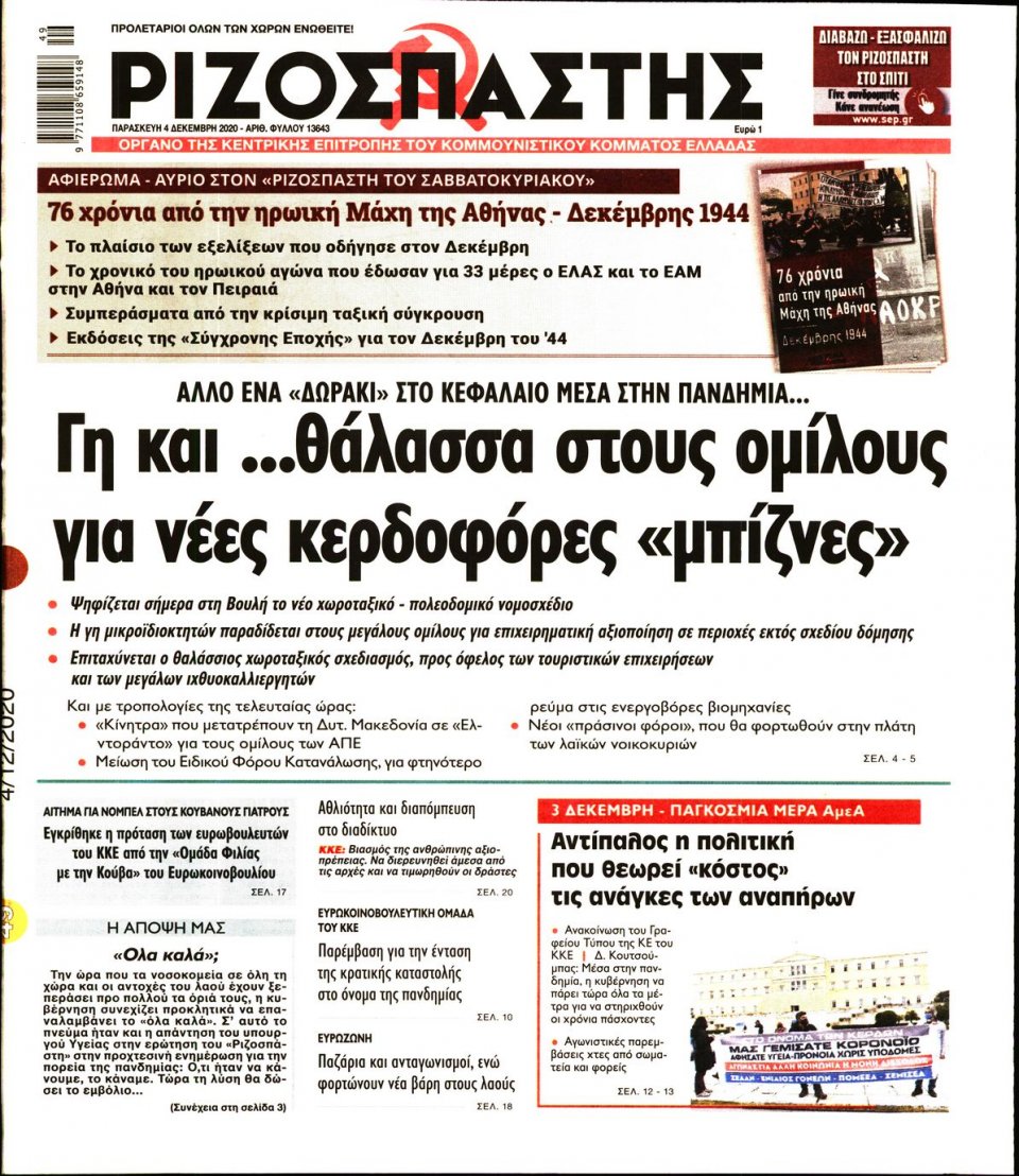 Τα πολιτικά πρωτοσέλιδα σήμερα (4/12)