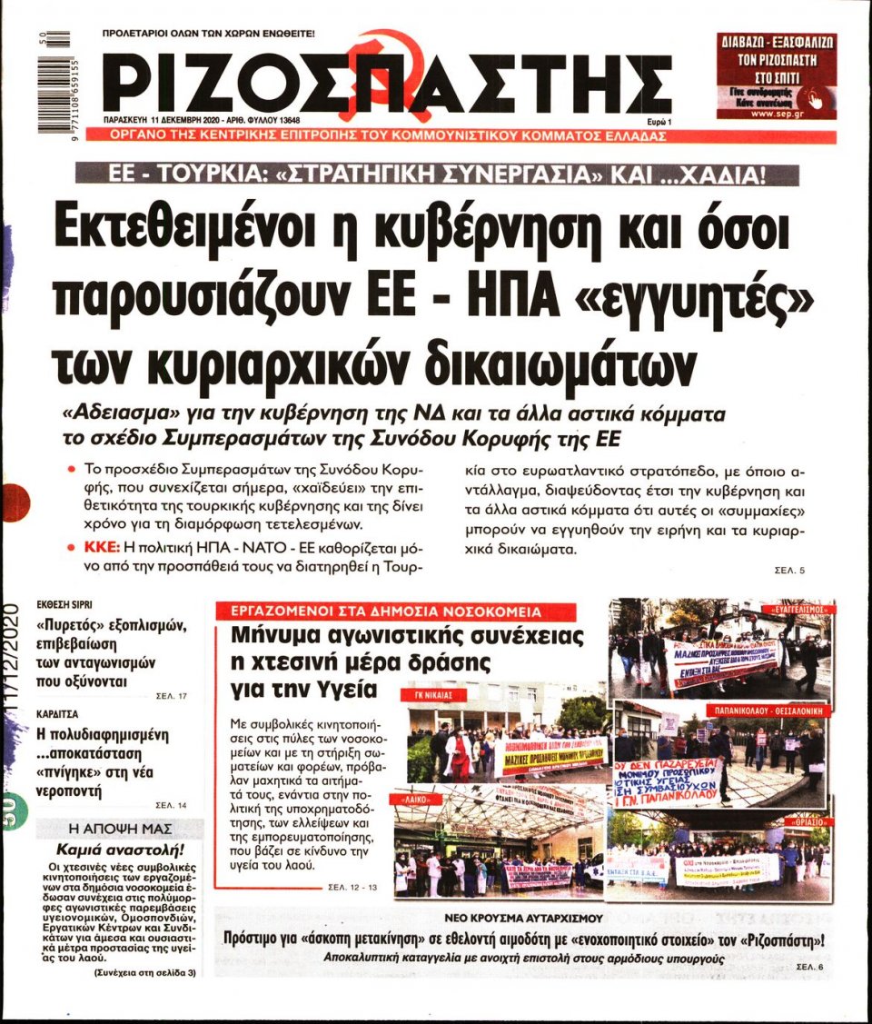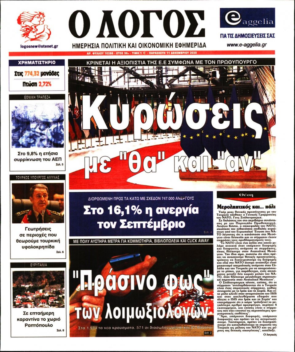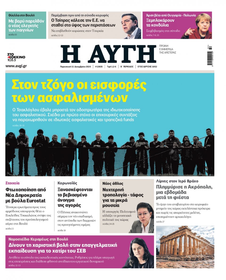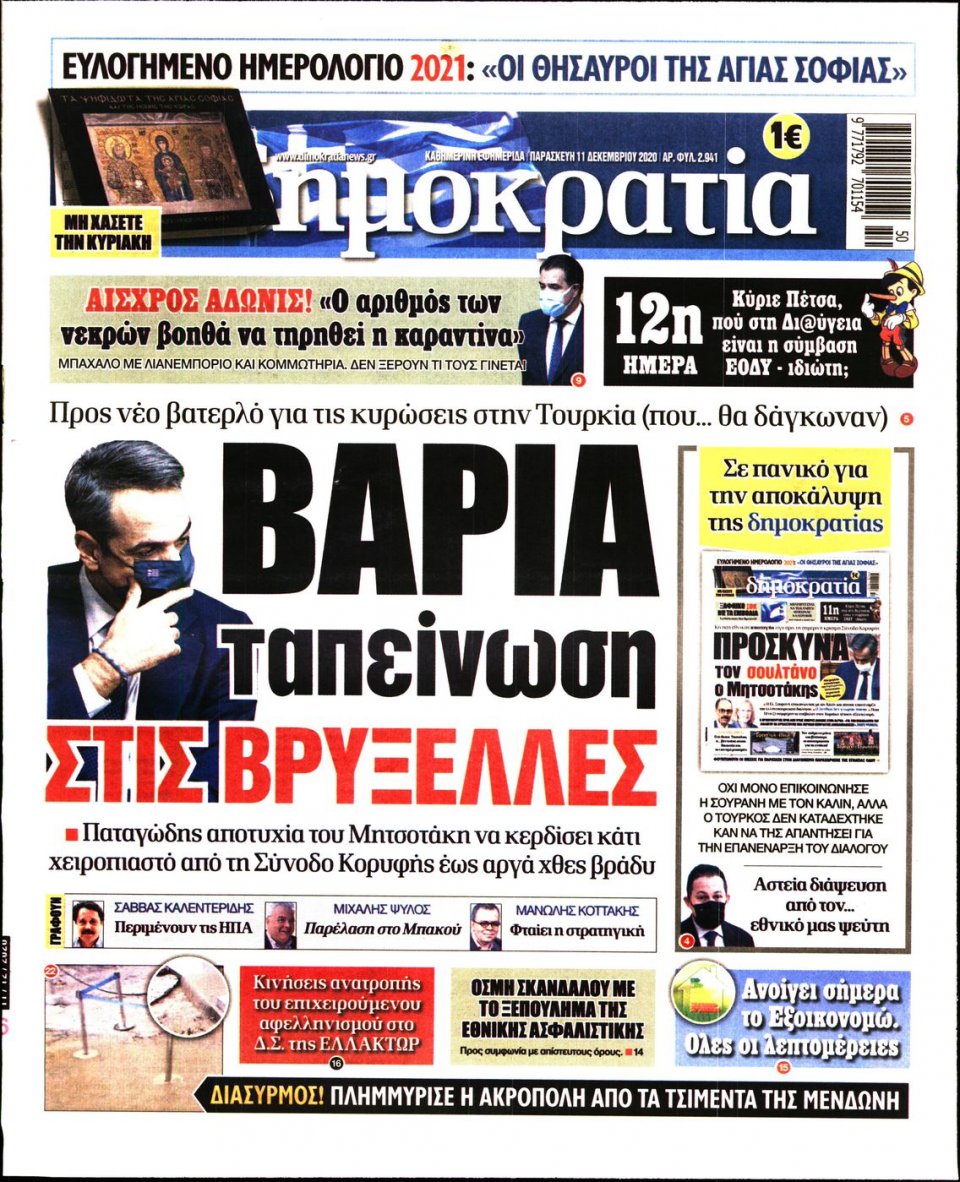 Τα πολιτικά πρωτοσέλιδα σήμερα (11/12)