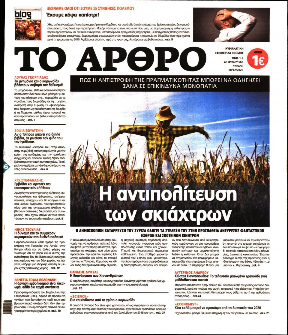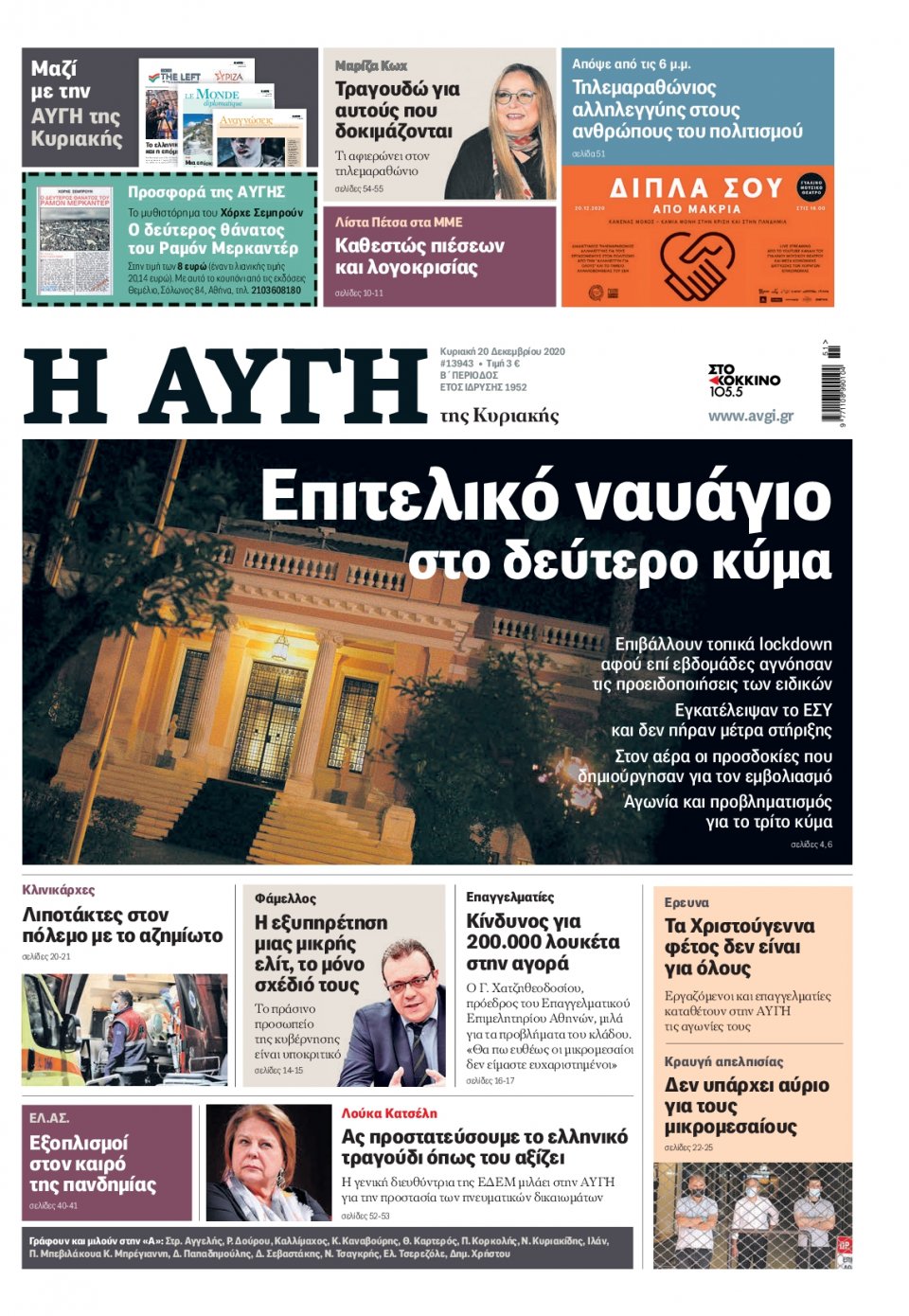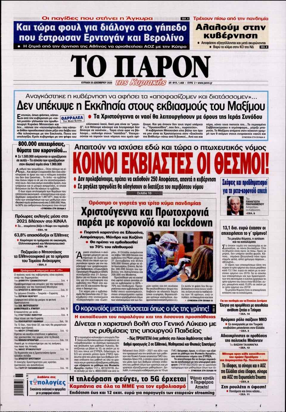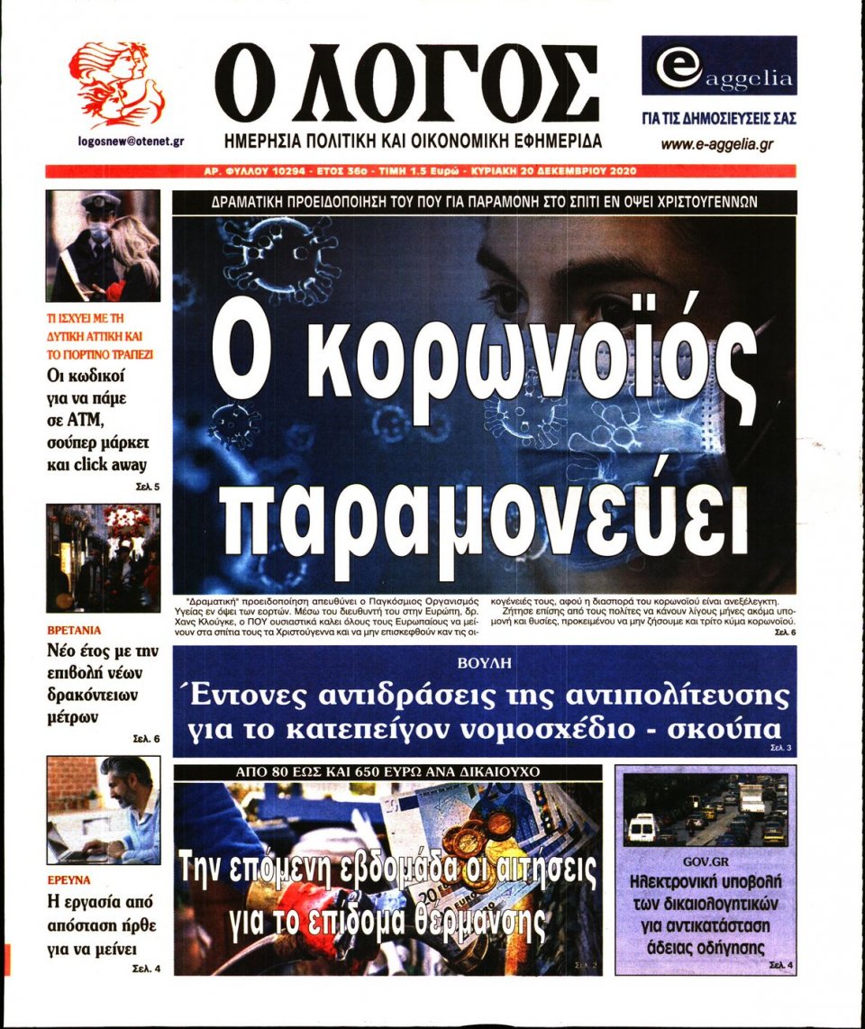 Τα πολιτικά πρωτοσέλιδα σήμερα (20/12)
