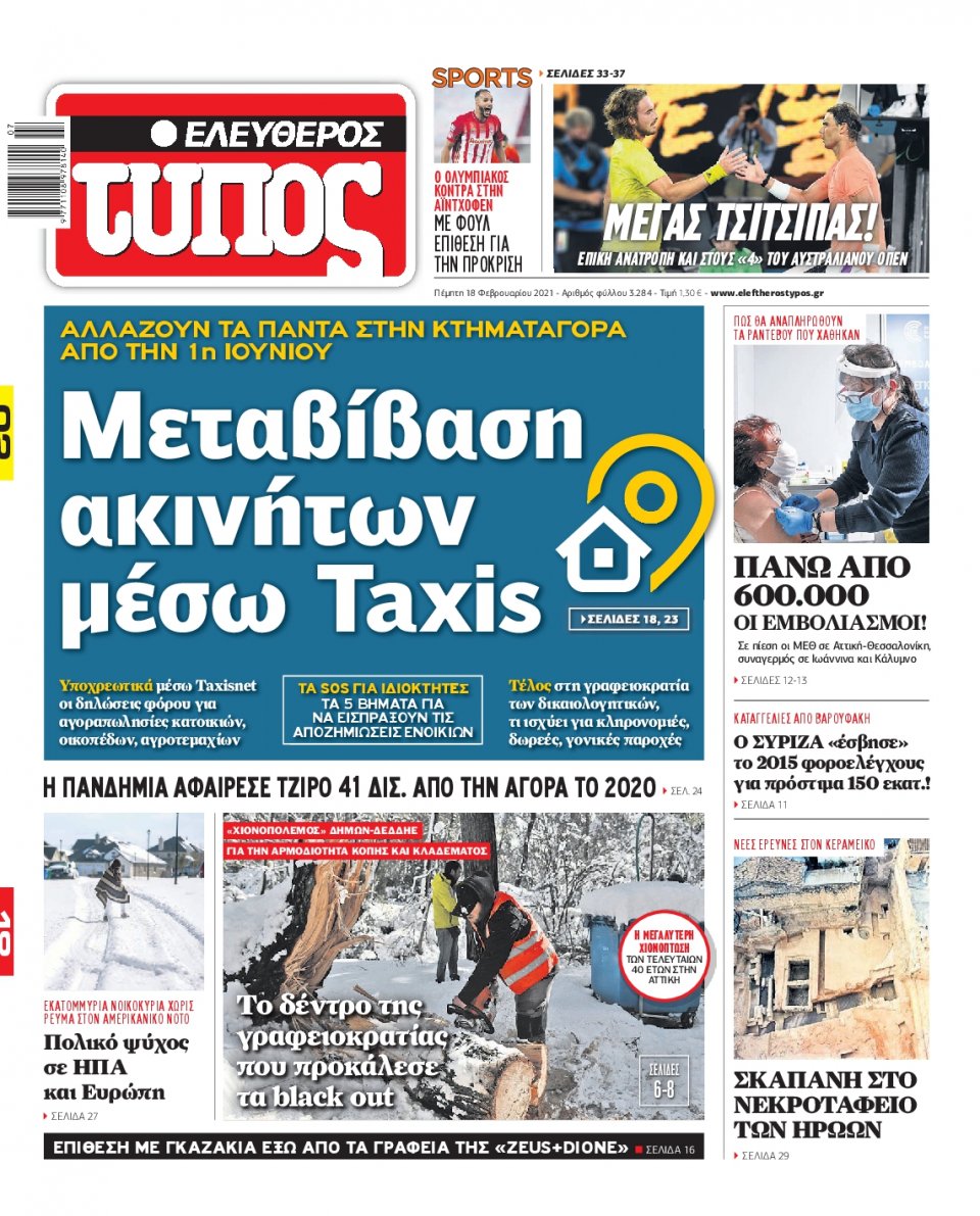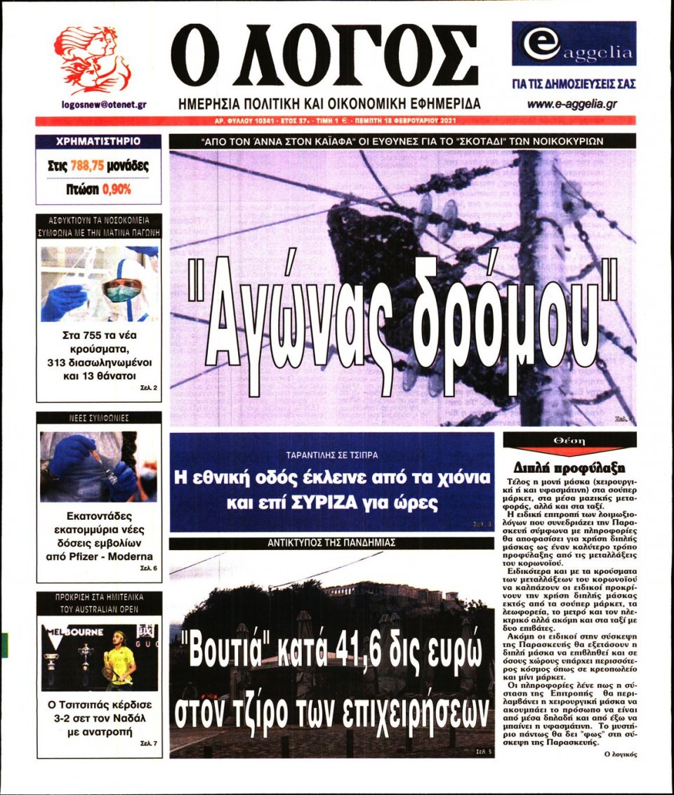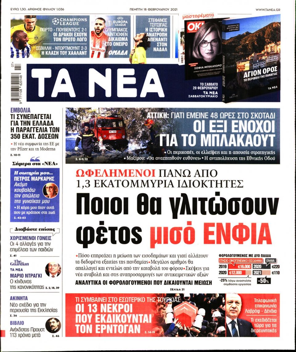 Τα πολιτικά πρωτοσέλιδα σήμερα (18/2)