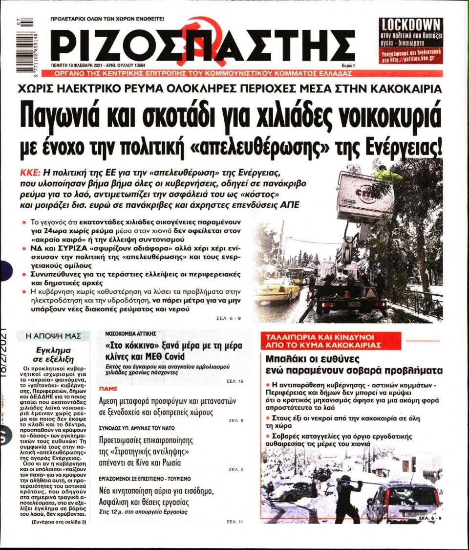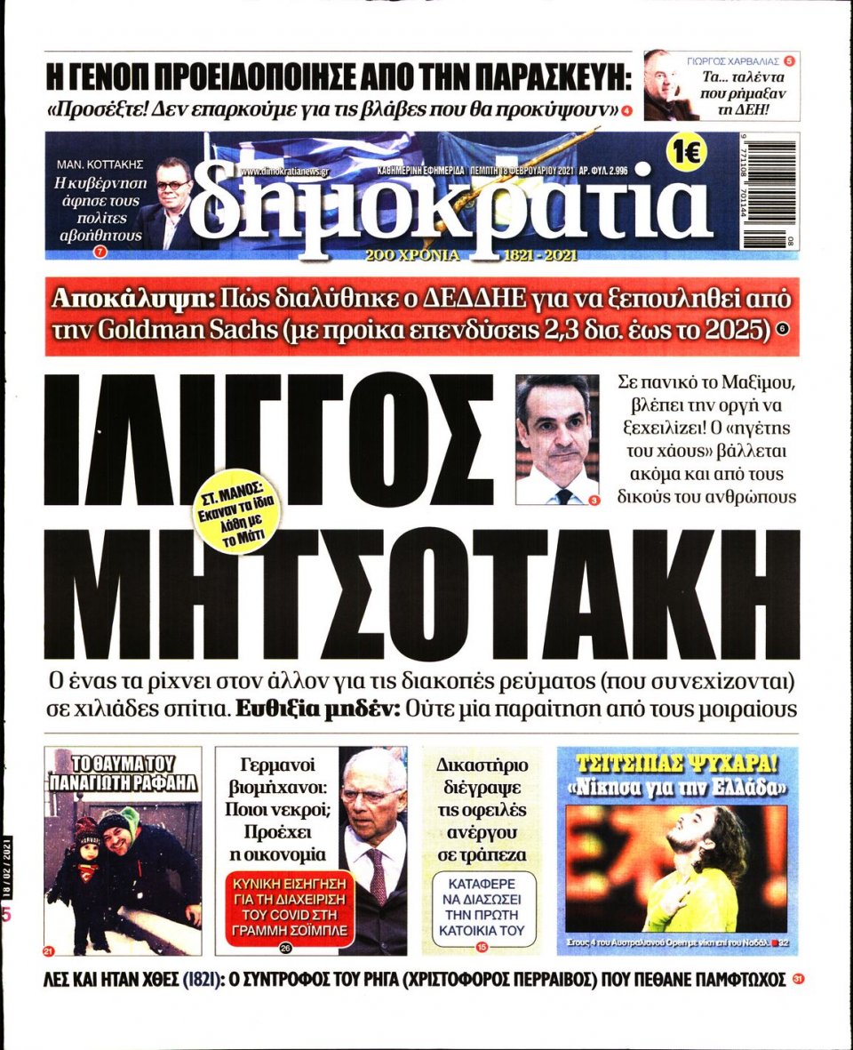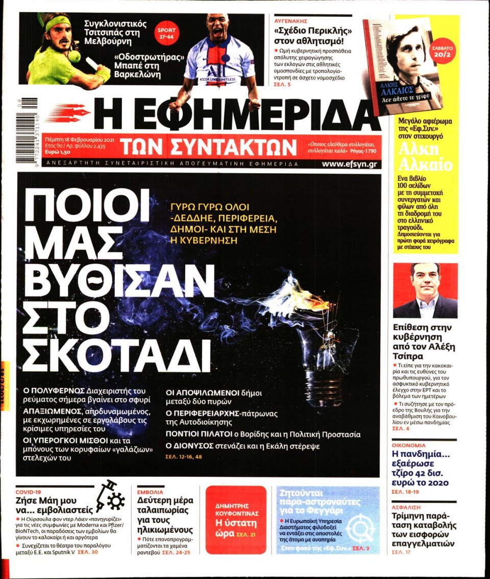 Τα πολιτικά πρωτοσέλιδα σήμερα (18/2)