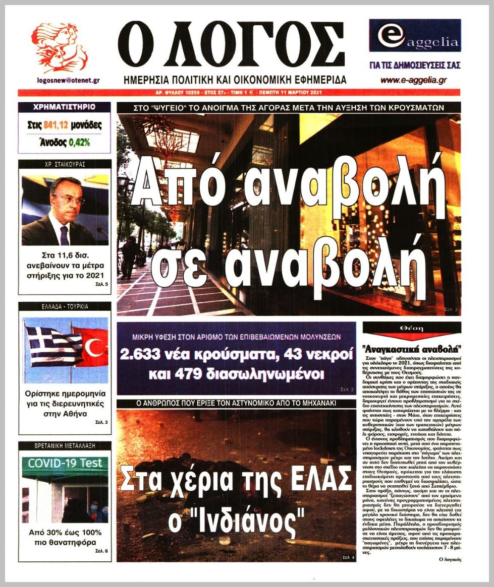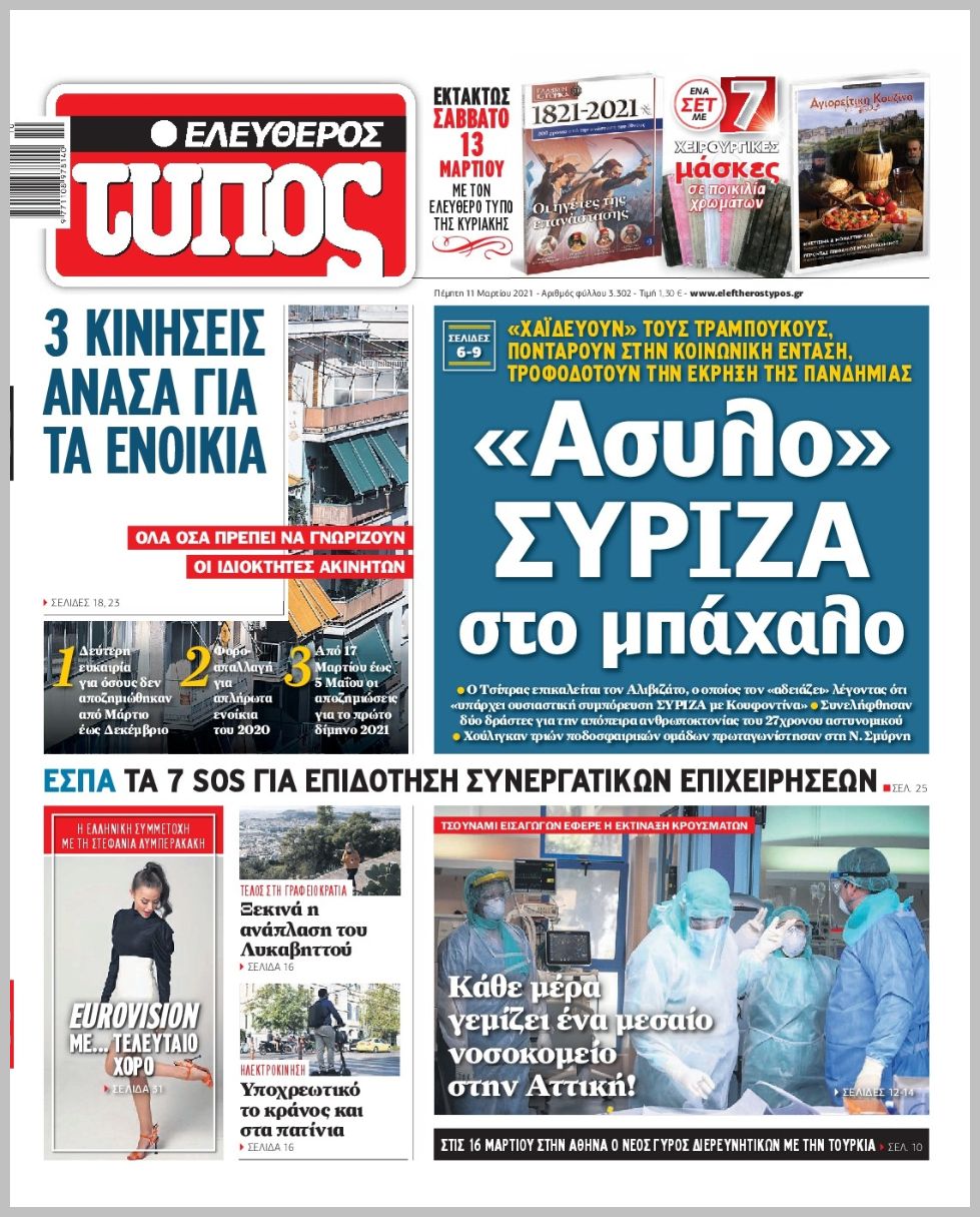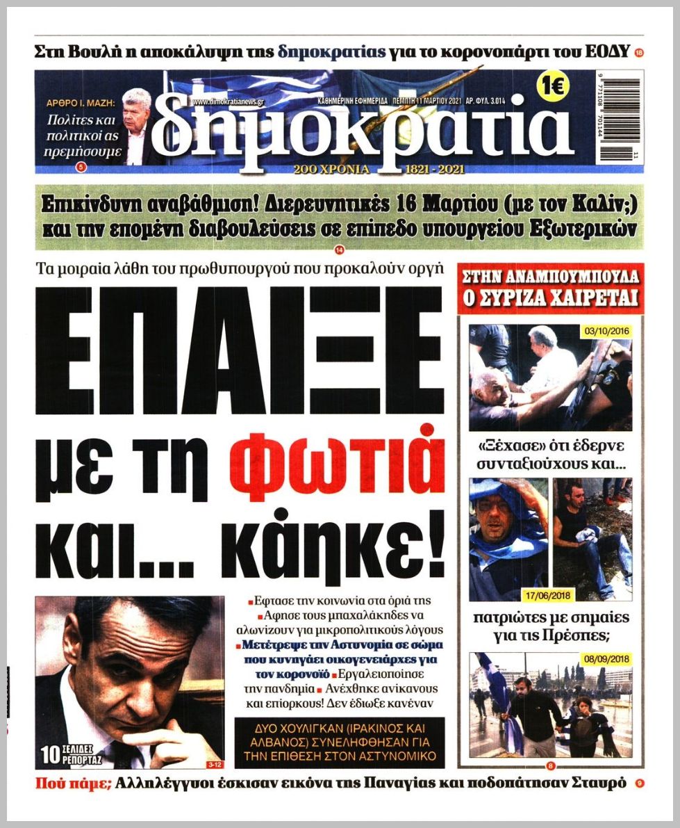 Τα πολιτικά πρωτοσέλιδα σήμερα (11/3)