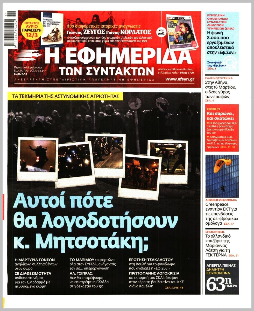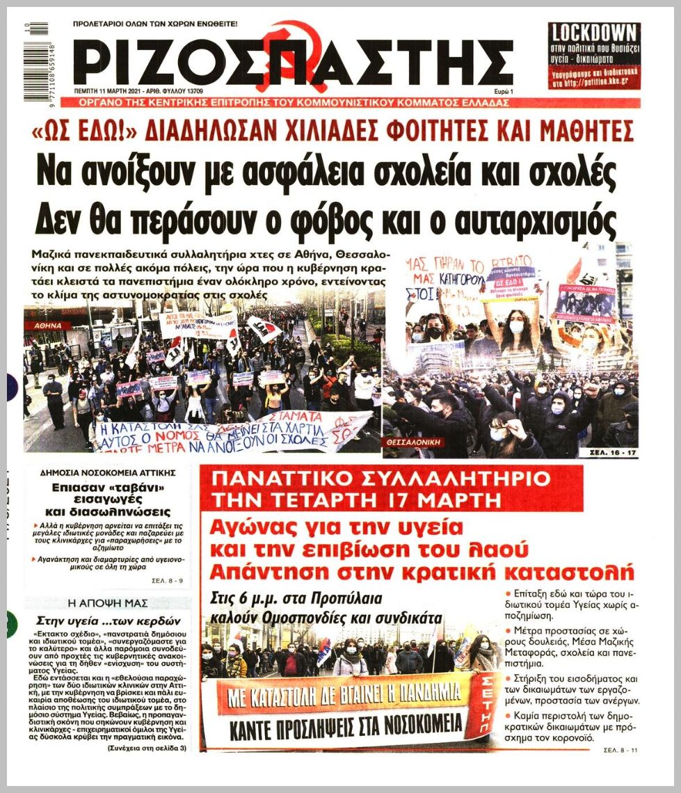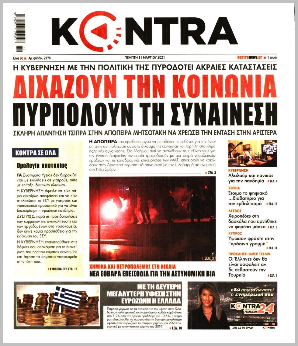 Τα πολιτικά πρωτοσέλιδα σήμερα (11/3)