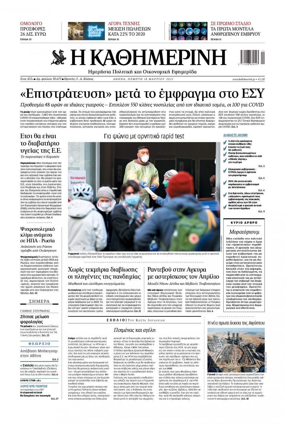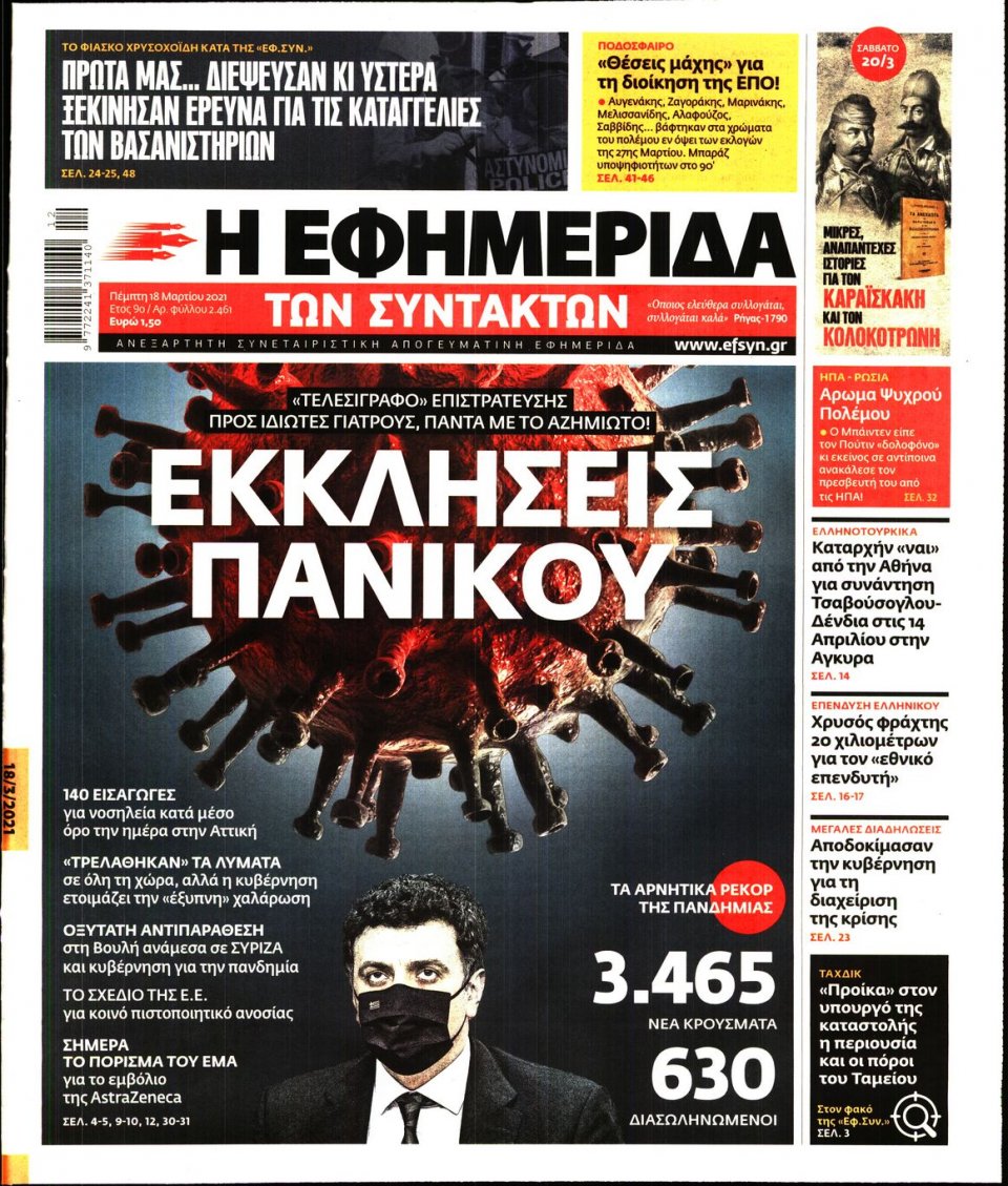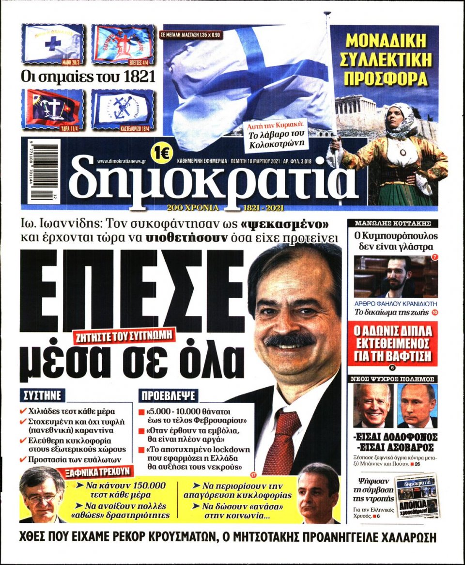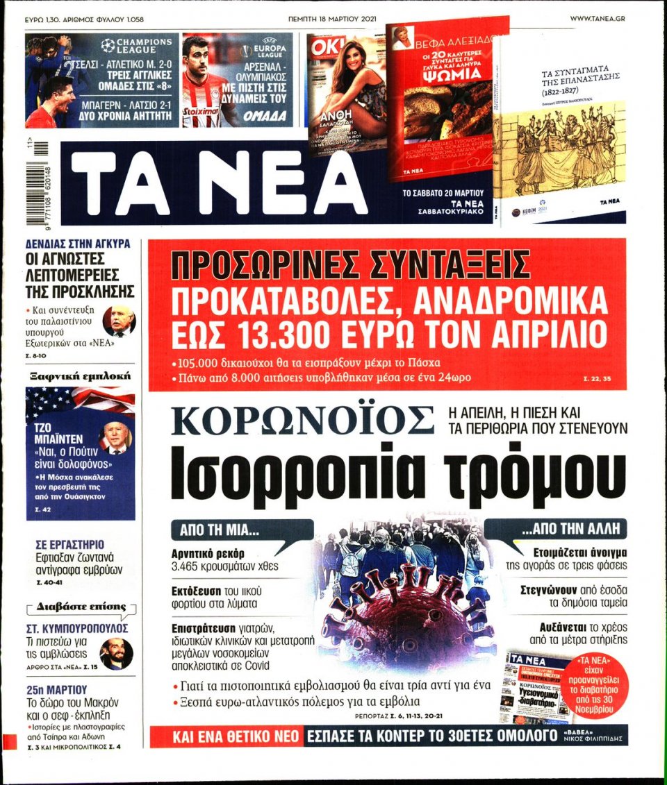 Τα πολιτικά πρωτοσέλιδα σήμερα (18/3)