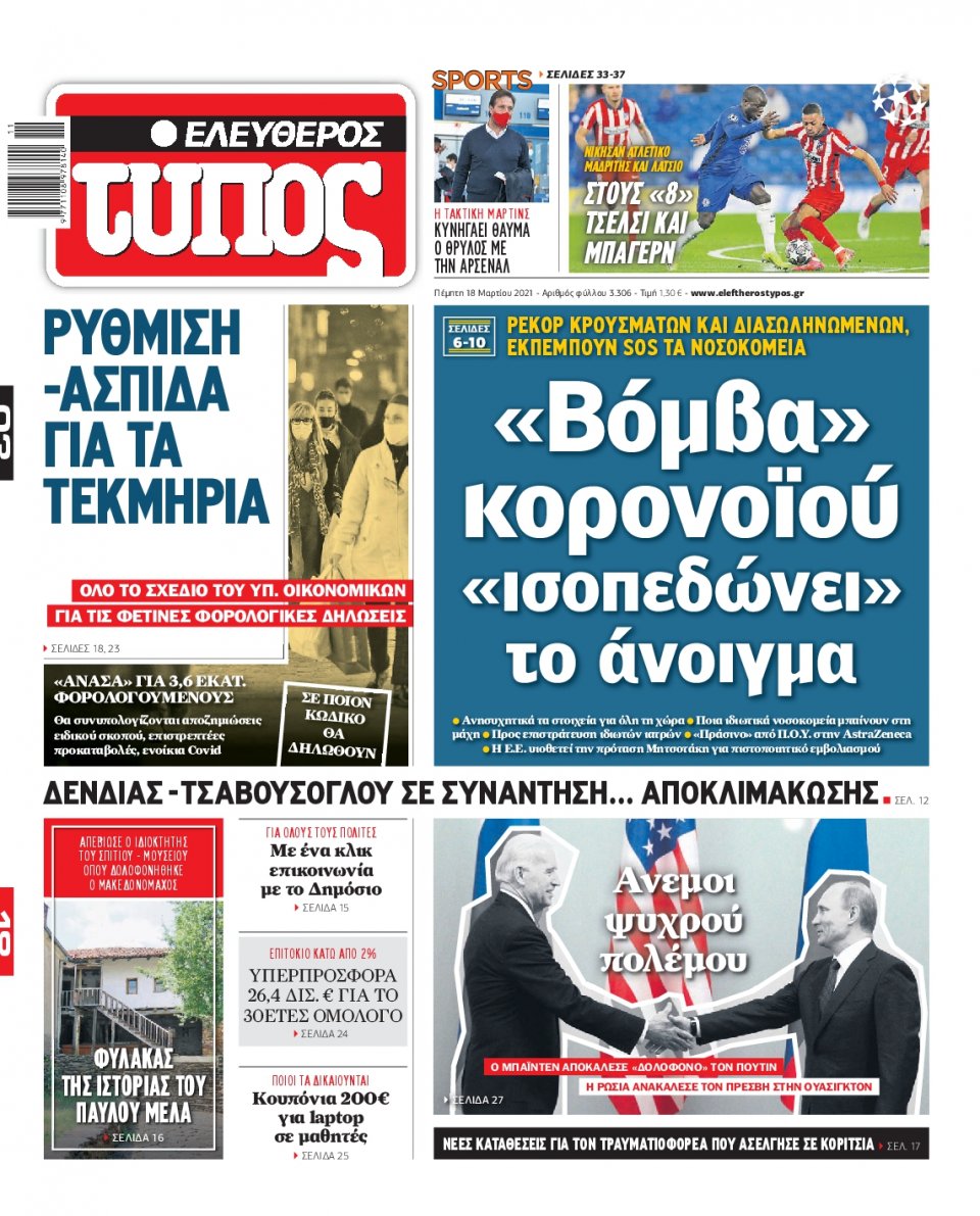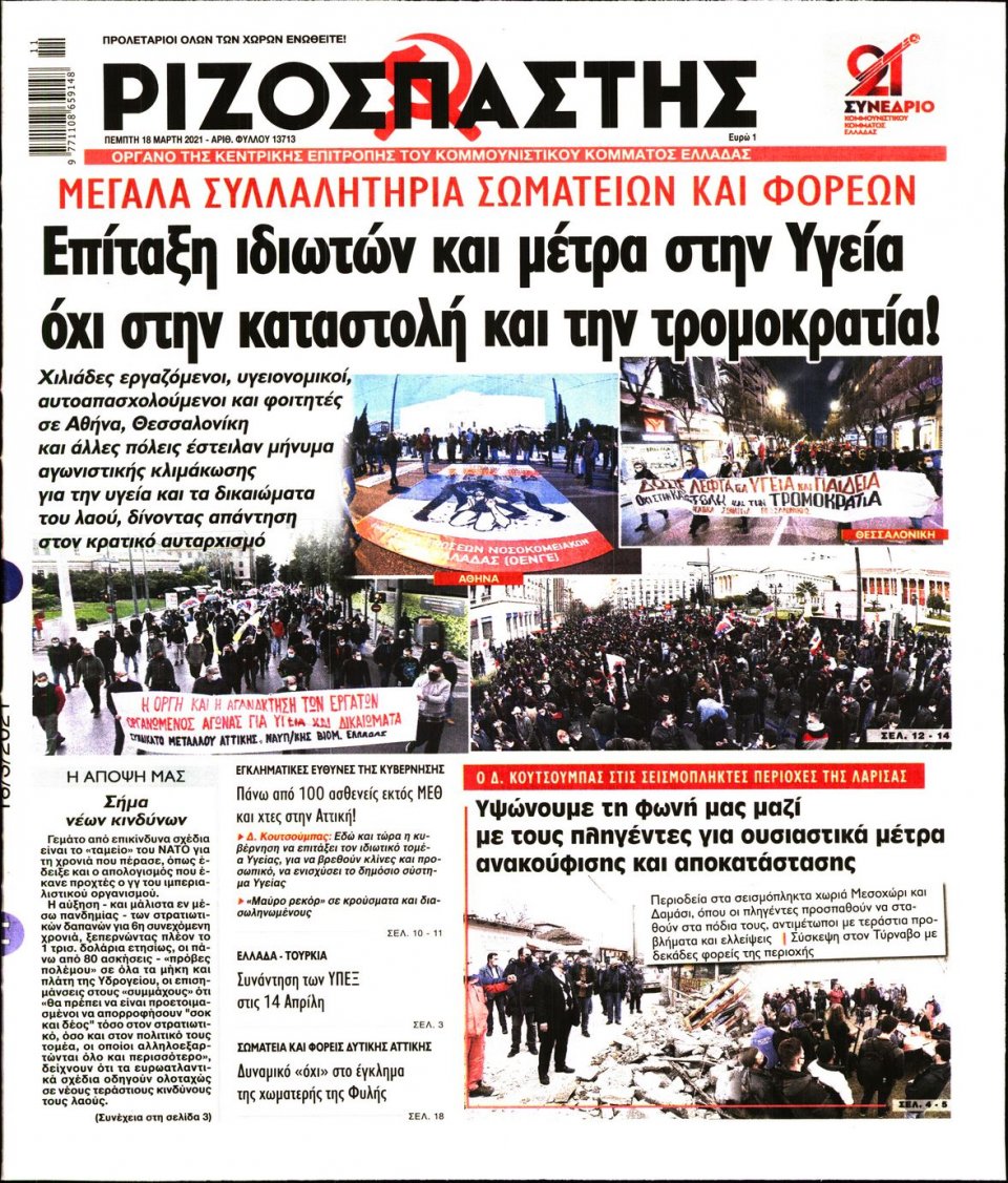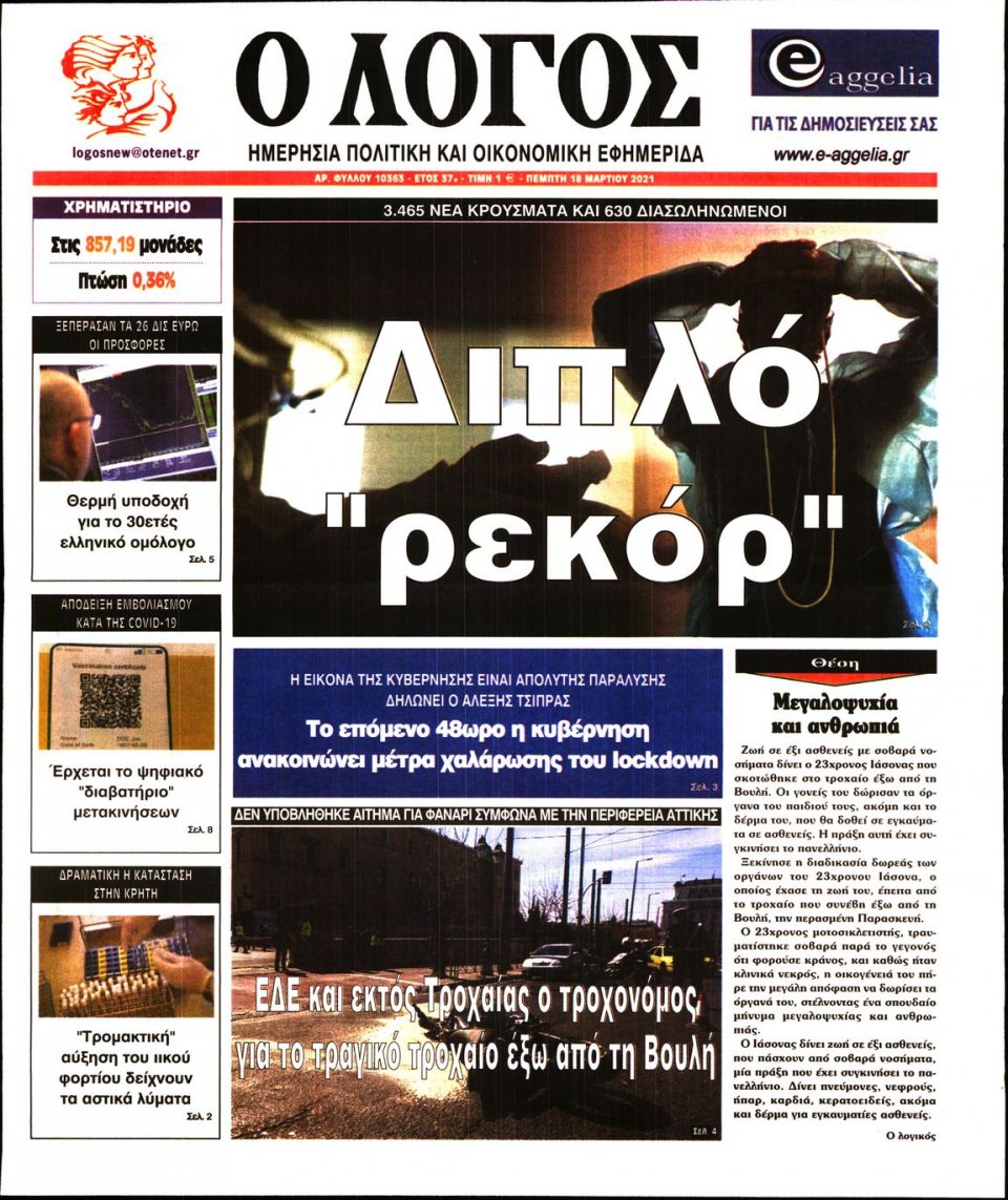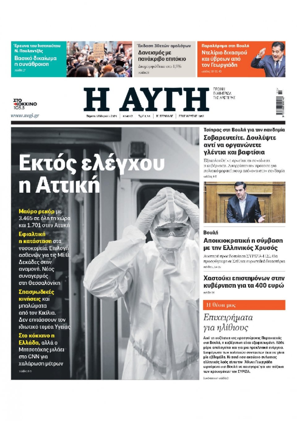 Τα πολιτικά πρωτοσέλιδα σήμερα (18/3)