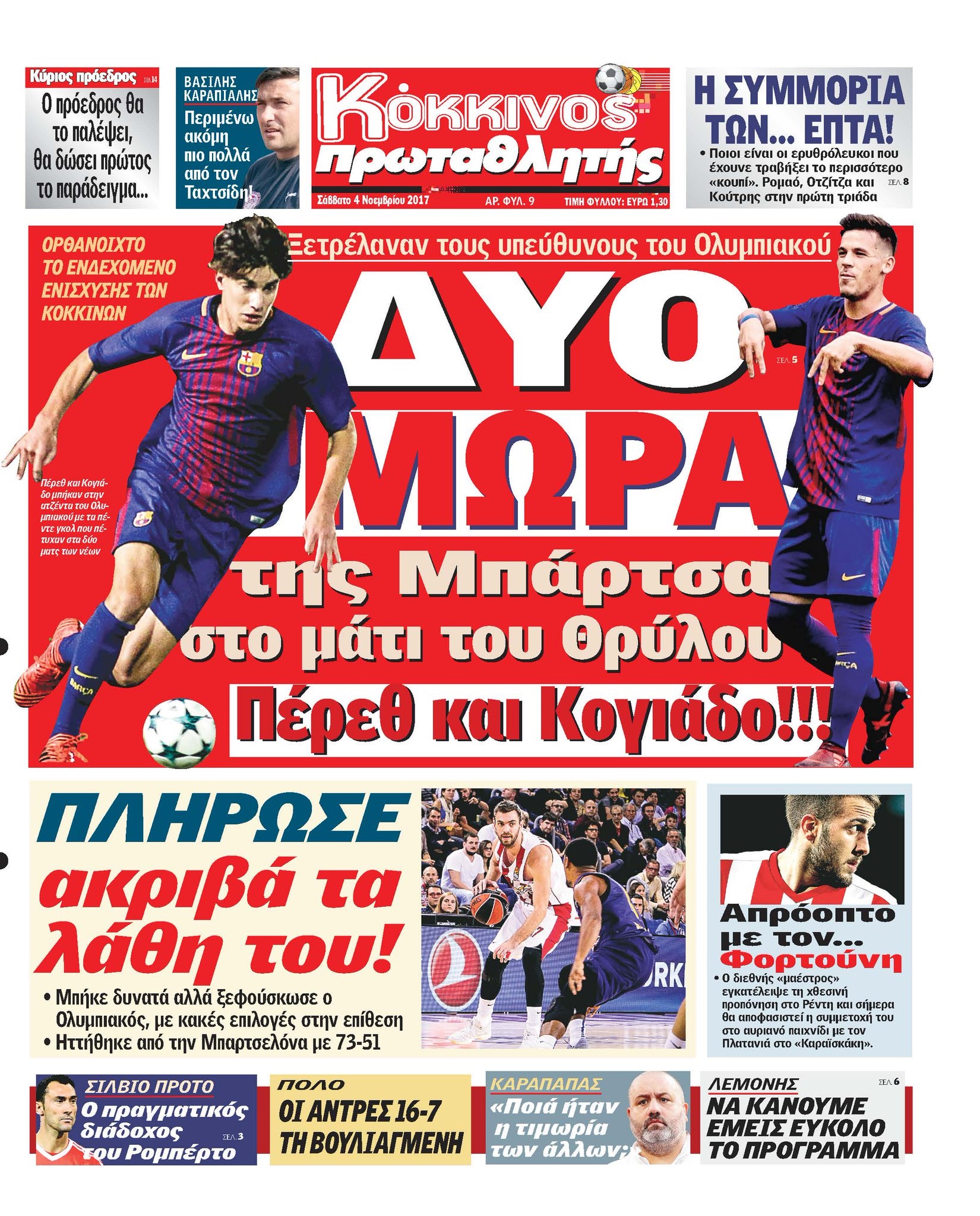 ΠΡΩΤΟΣΕΛΙΔΑ Τα πρωτοσέλιδα των αθλητικών εφημερίδων σήμερα (4/11) to10.gr 04.11.2017-02:14 Διαβάστε τα πρωτοσέλιδα των αθλητικών εφημερίδων του Σαββάτου (4/11). TAGS: ΠΡΩΤΟΣΕΛΙΔΑ ΕΠΙΛΕΓΜΕΝΑ ΕΥΡΩΠΗ 01.12.2025-18:45 Live το μεγάλο ντέρμπι της Φενέρμπαχτσε με τη Γαλατάσαραϊ ΕΘΝΙΚΕΣ ΟΜΑΔΕΣ 01.12.2025-18:33 Αυτό το Μουντιάλ ποιος θα το πάρει; Ο υπερυπολογιστής της Opta απαντά… MUST READ Μουζακίτης: «Ομάδα των ονείρων μου η Ρεάλ – Στην προπόνηση με φωνάζουν… χρυσό αγόρι» Ακολουθήστε στο Google News και μάθετε πρώτοι όλες τις αθλητικές ειδήσεις Δείτε όλες τις τελευταίες Αθλητικές Ειδήσεις από την Ελλάδα και τον Κόσμο, από