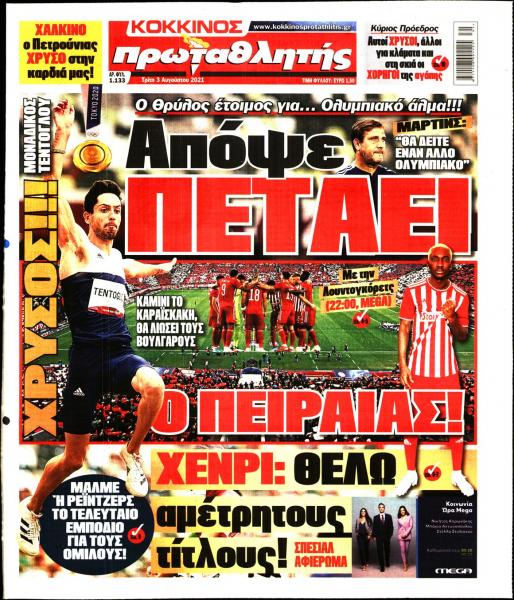 Τα αθλητικά πρωτοσέλιδα σήμερα (3/8)