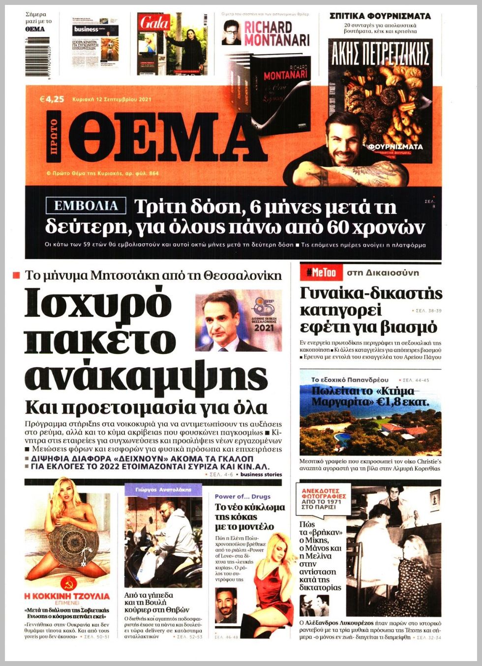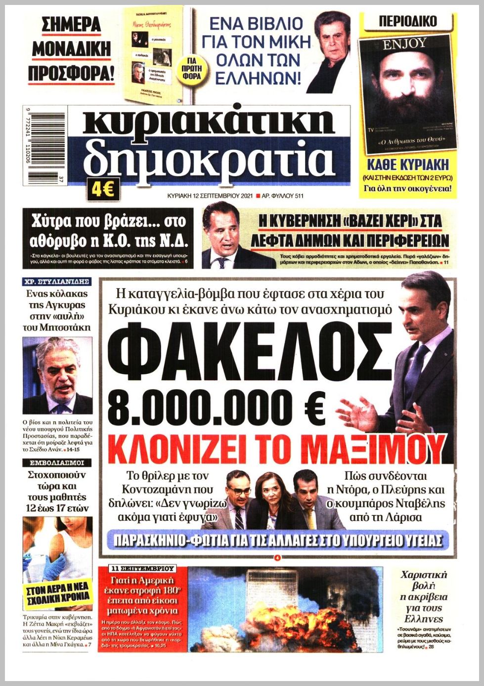 Τα πολιτικά πρωτοσέλιδα σήμερα (12/9)