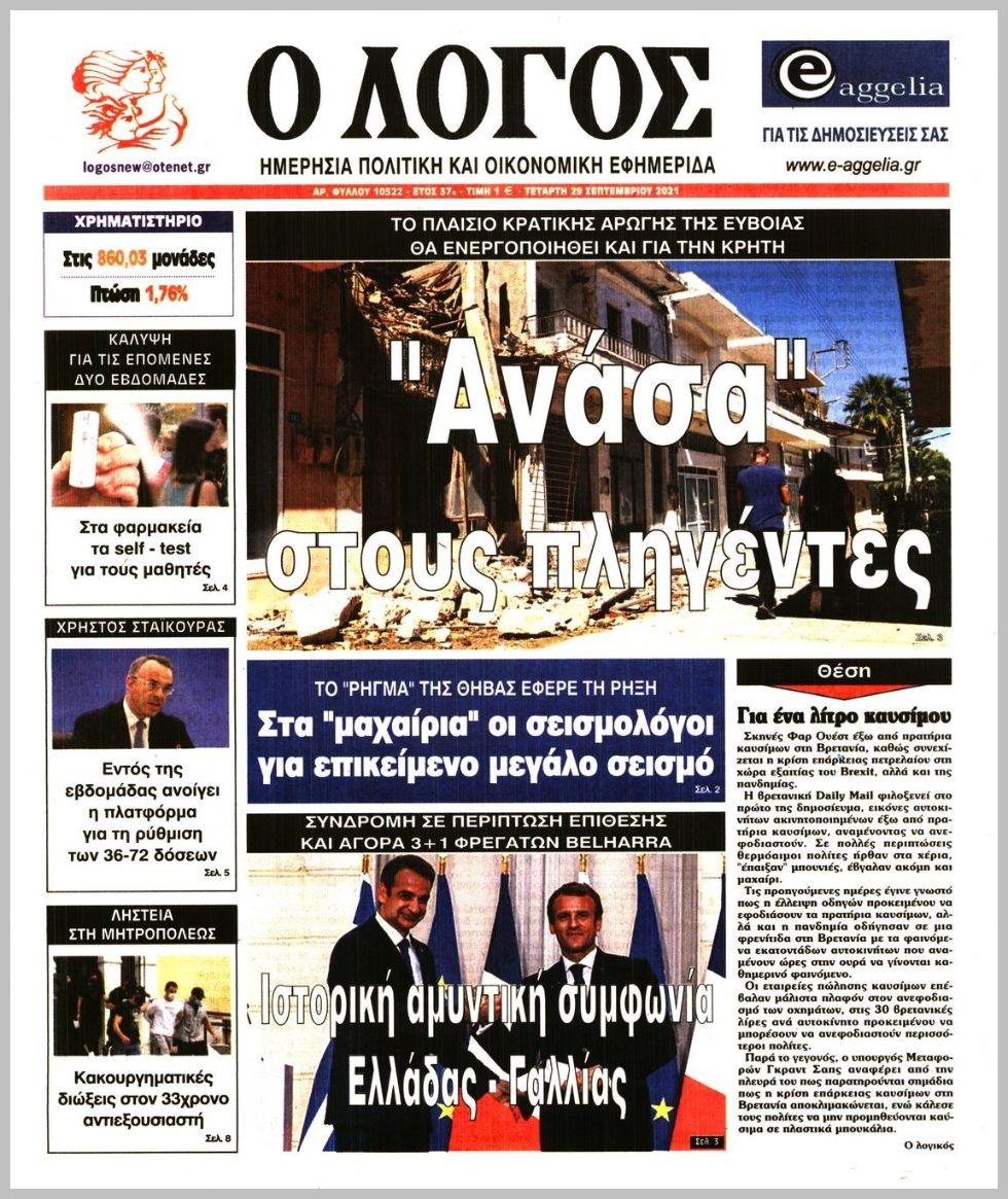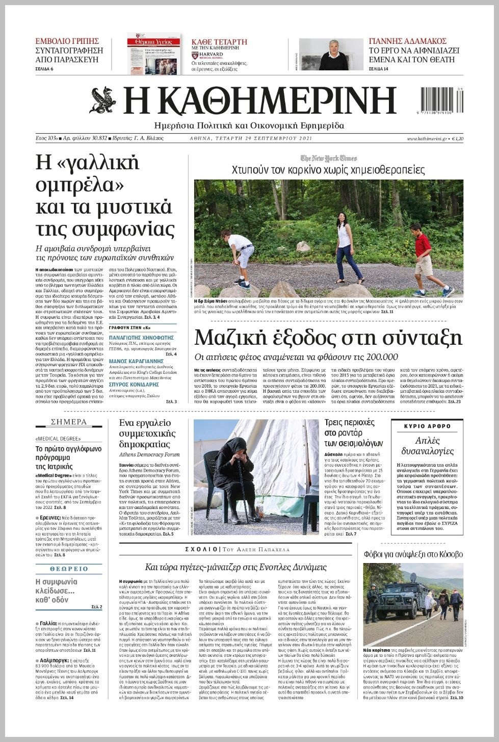 Τα πολιτικά πρωτοσέλιδα σήμερα (29/9)