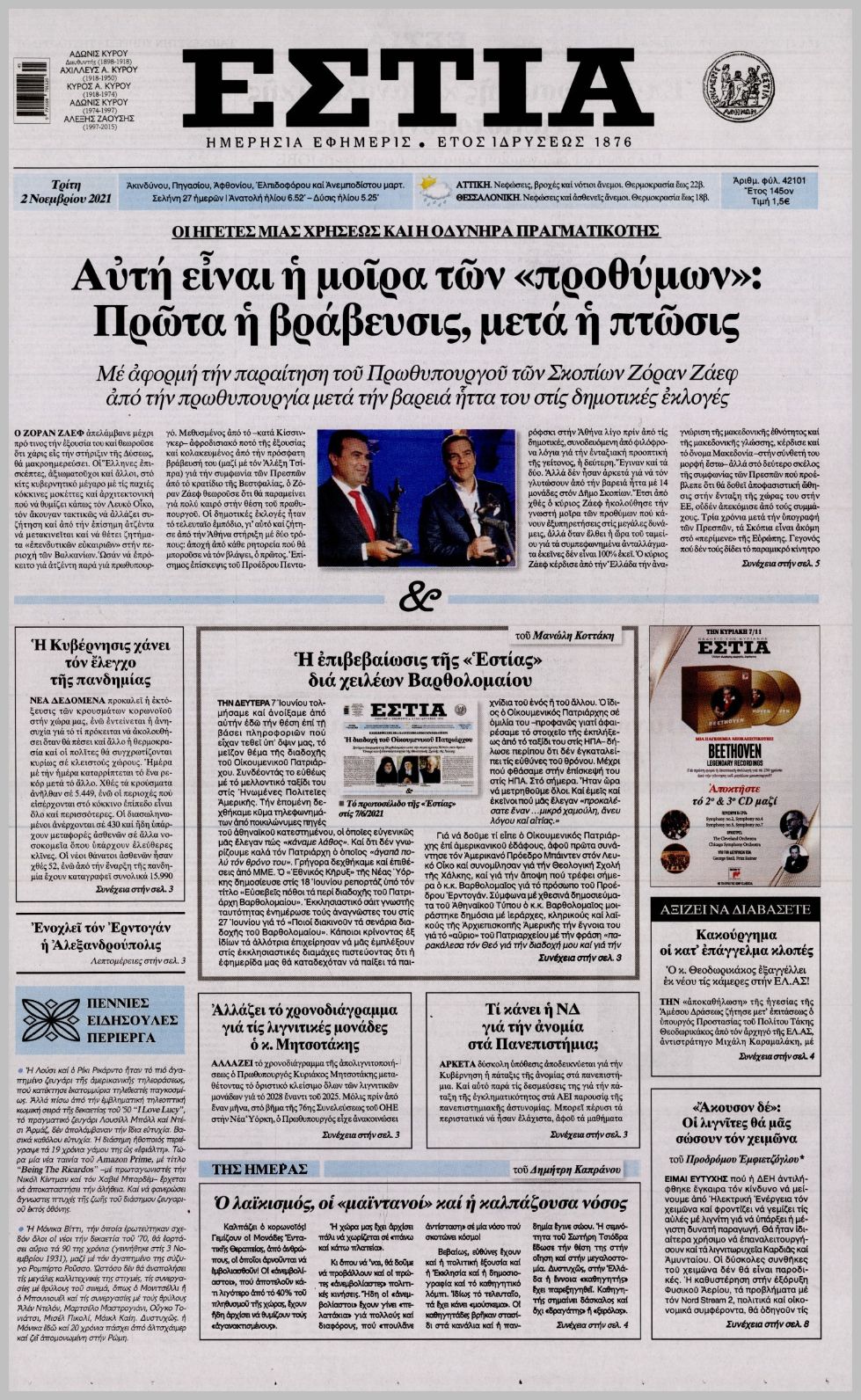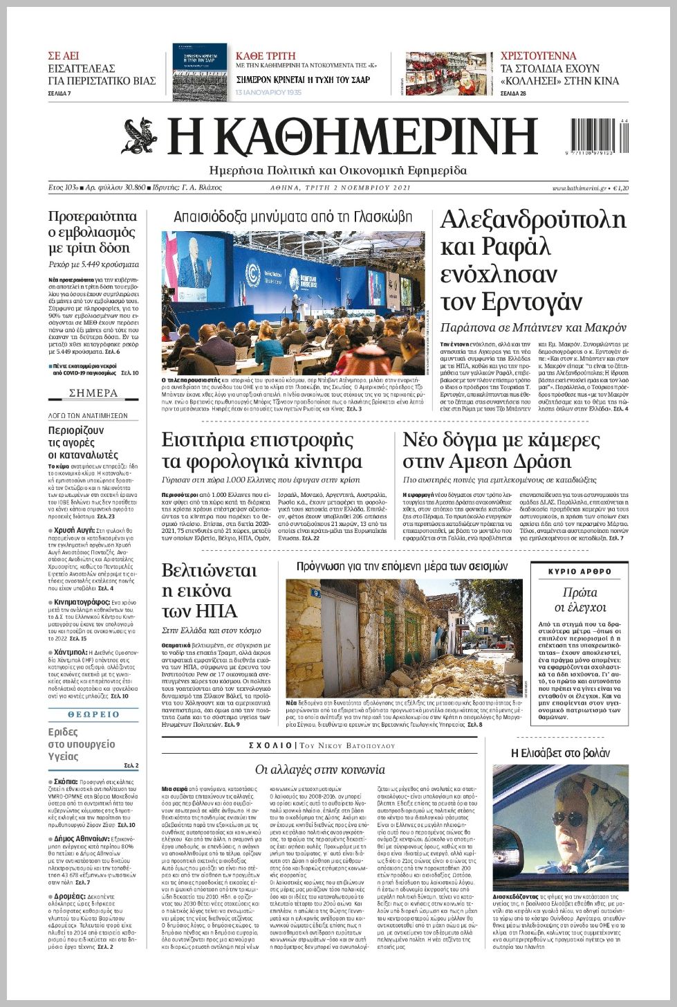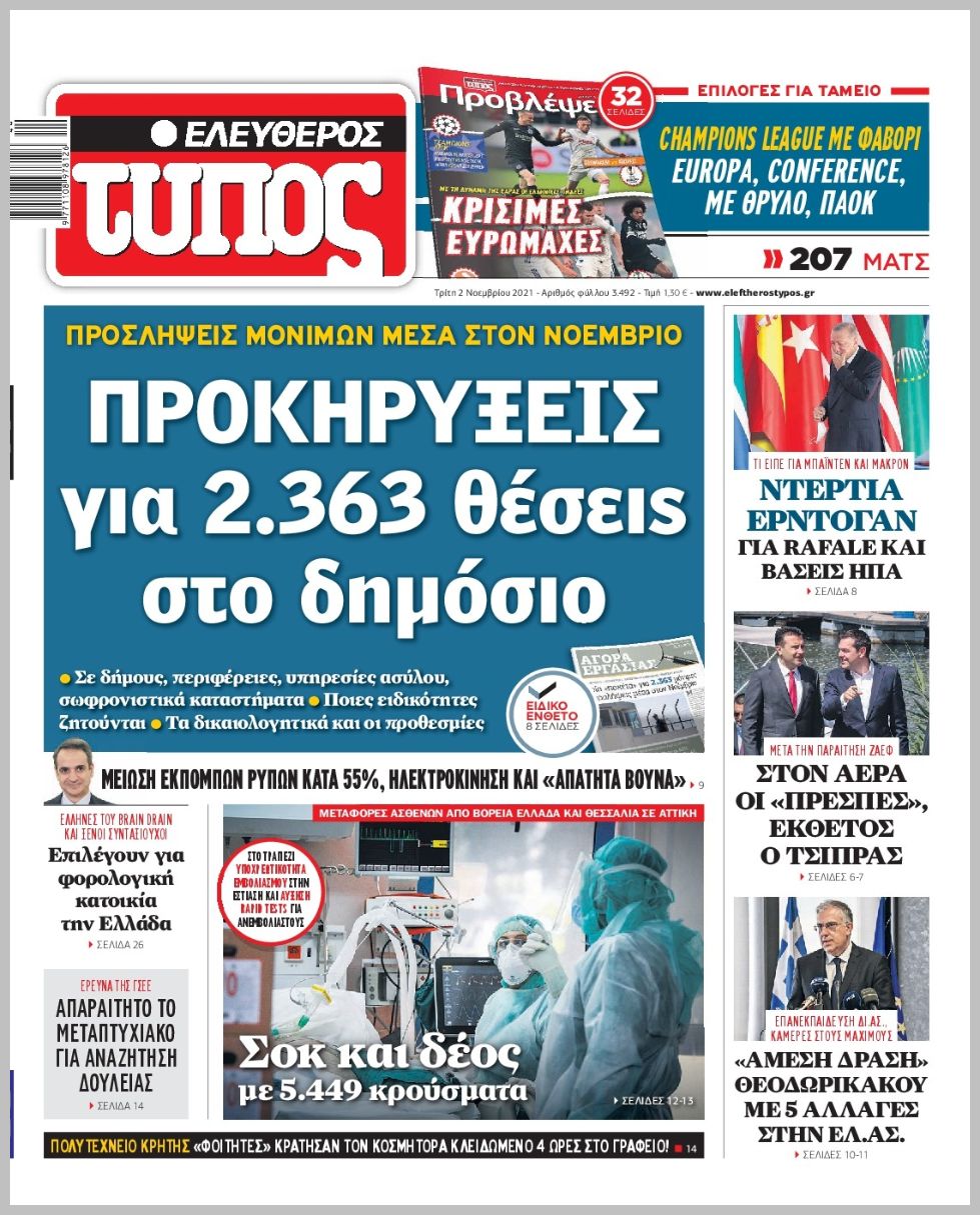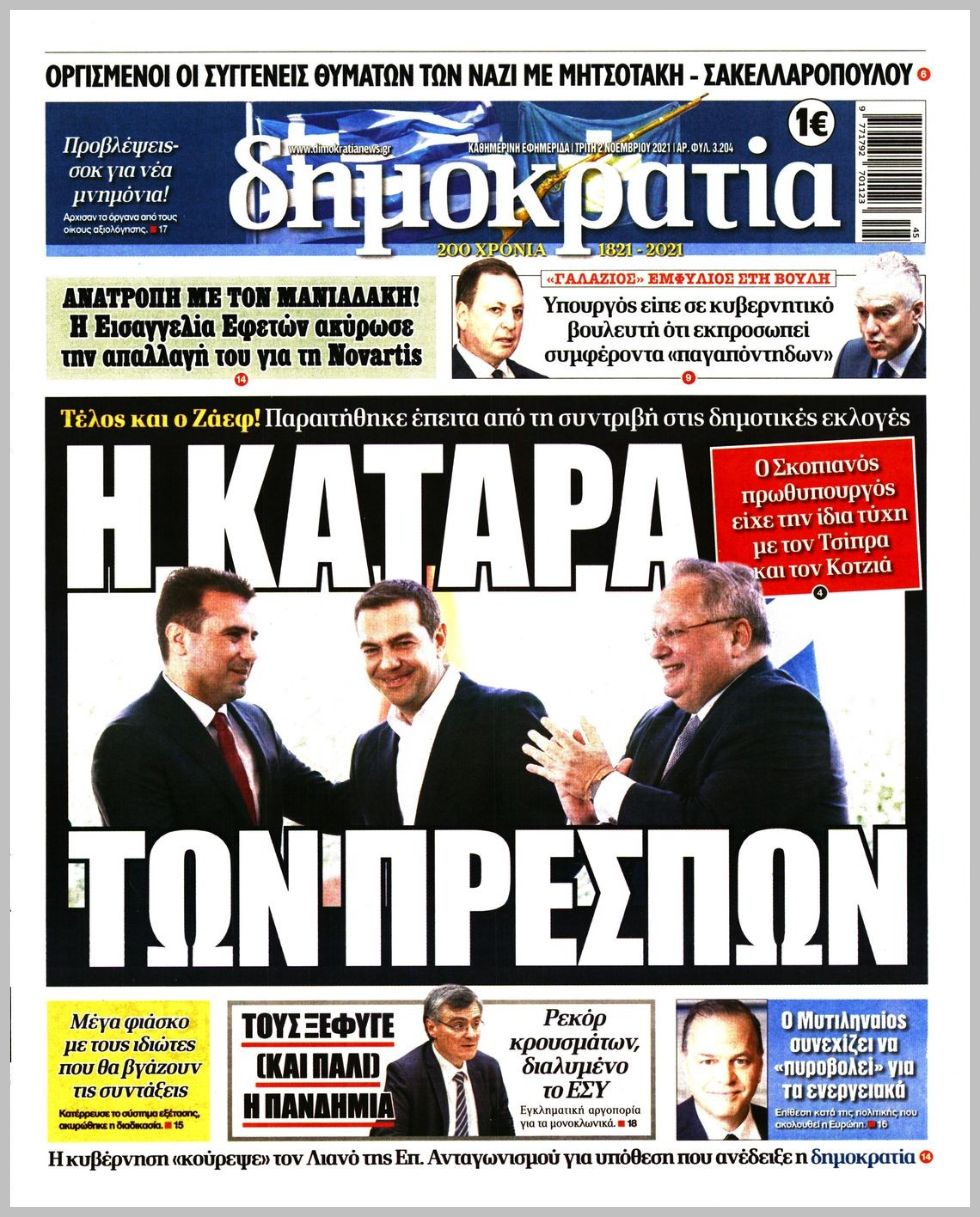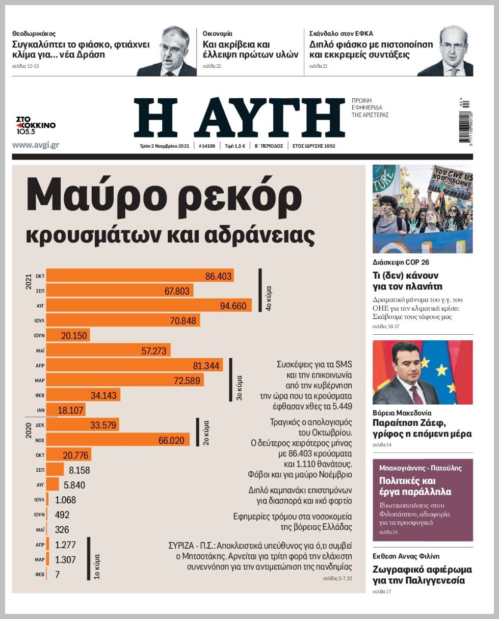 Τα πολιτικά πρωτοσέλιδα σήμερα (2/11)