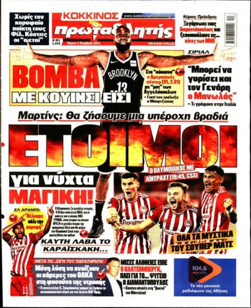 Τα αθλητικά πρωτοσέλιδα σήμερα (4/11)
