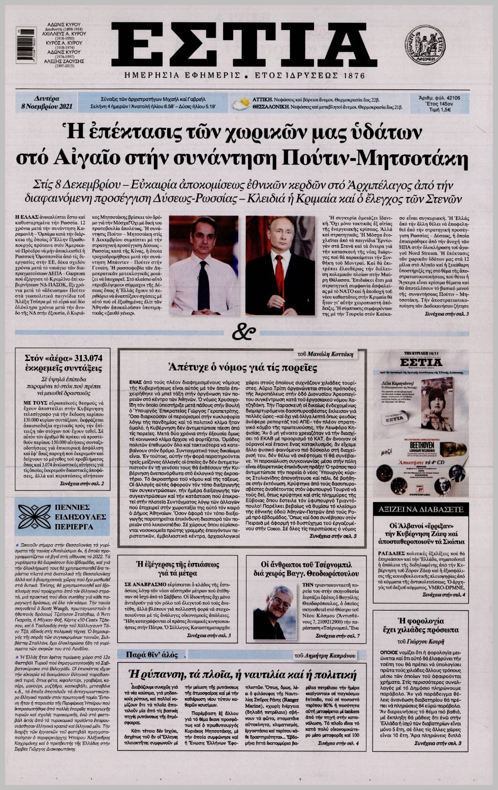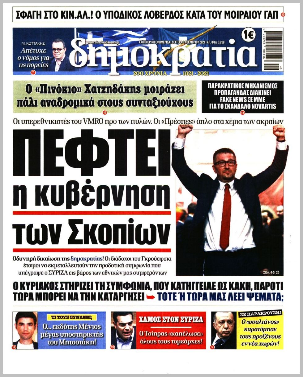 Τα πολιτικά πρωτοσέλιδα σήμερα (8/11)