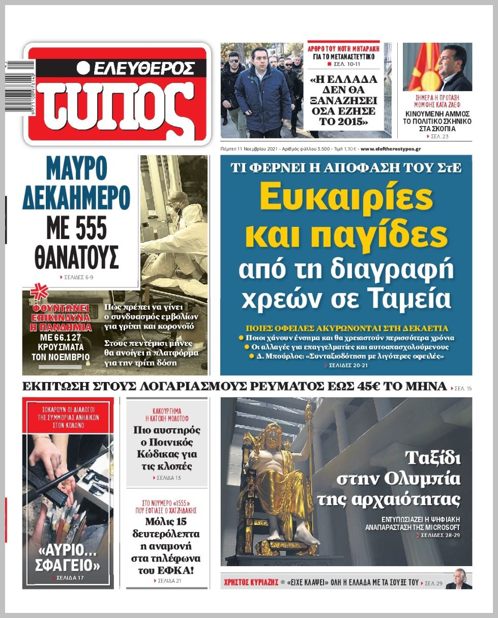 Τα πολιτικά πρωτοσέλιδα σήμερα (11/11)