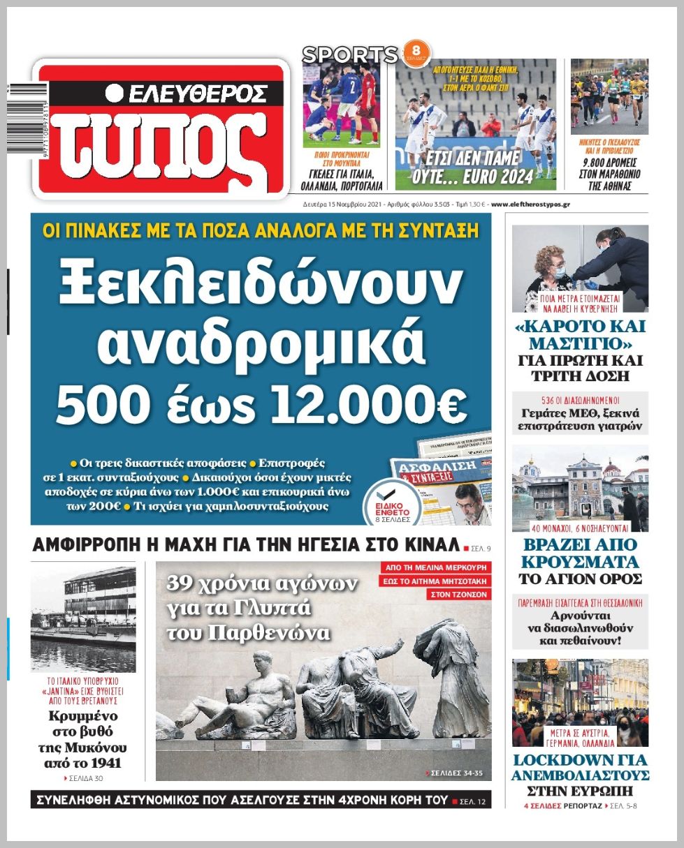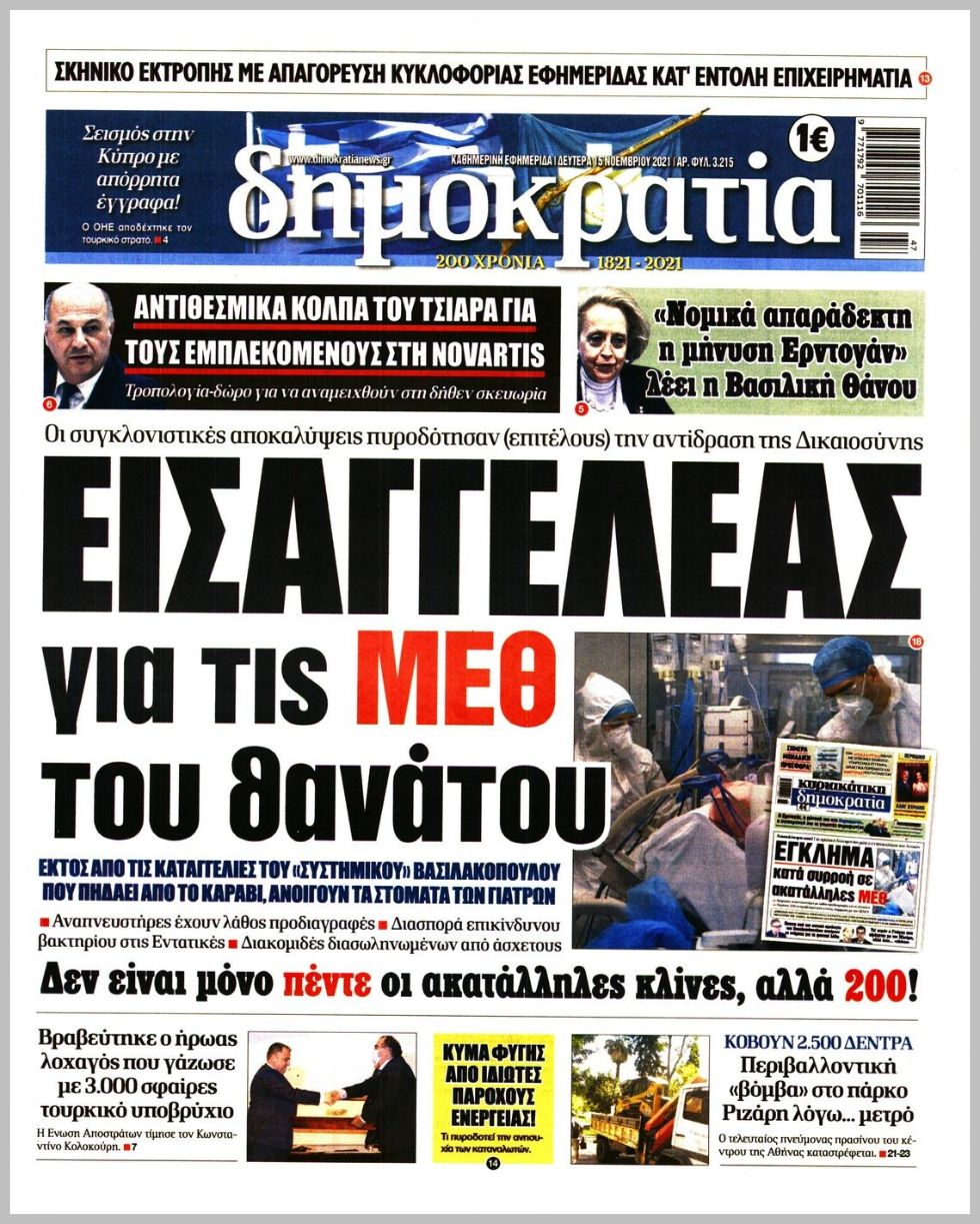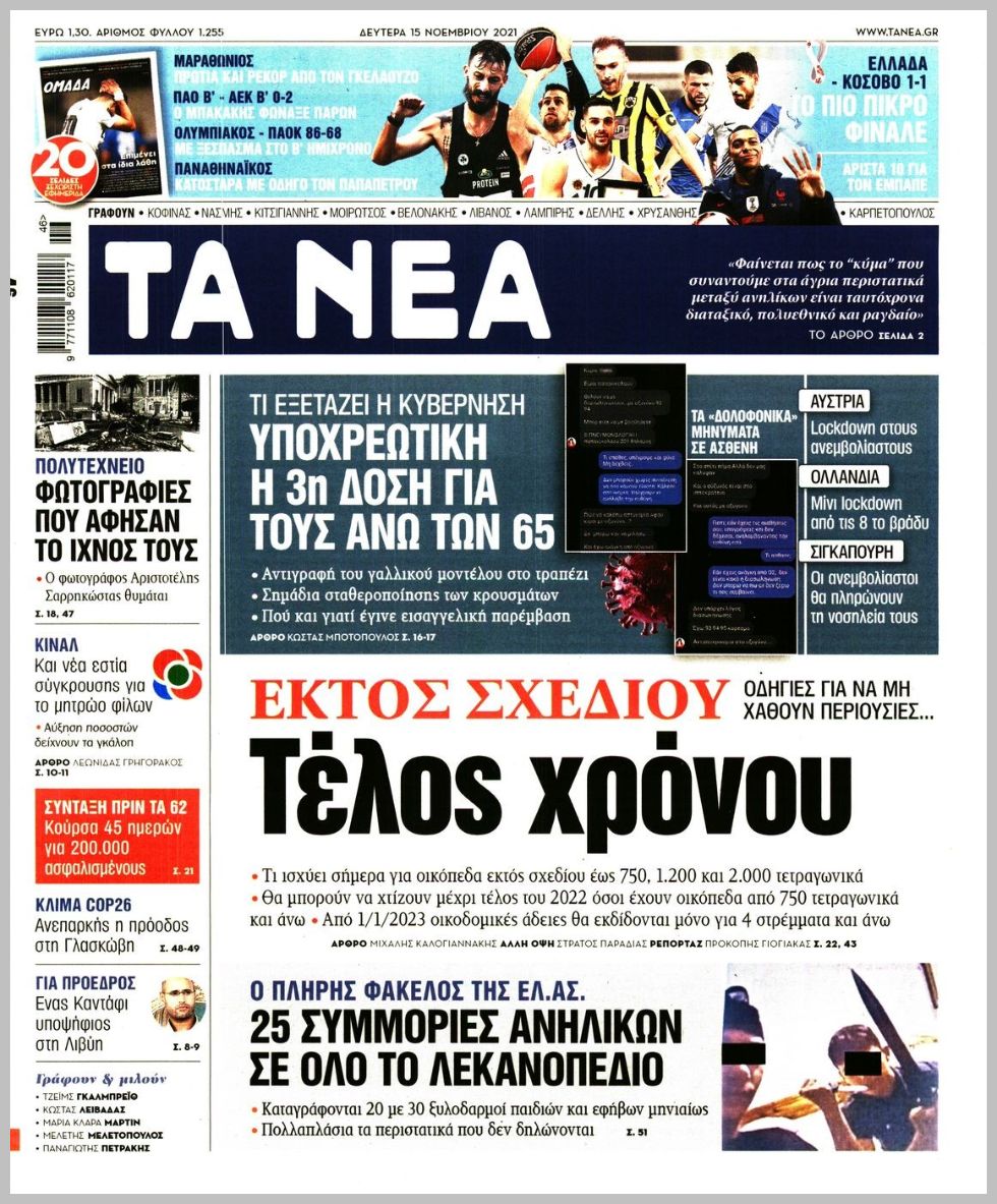 Τα πολιτικά πρωτοσέλιδα σήμερα (15/11)