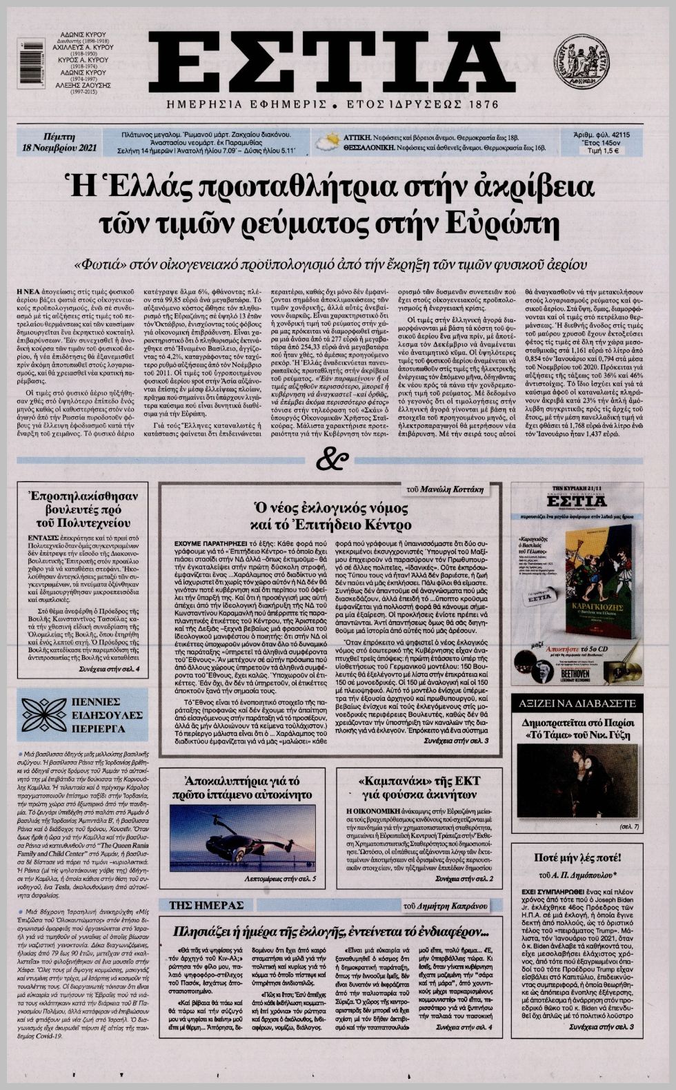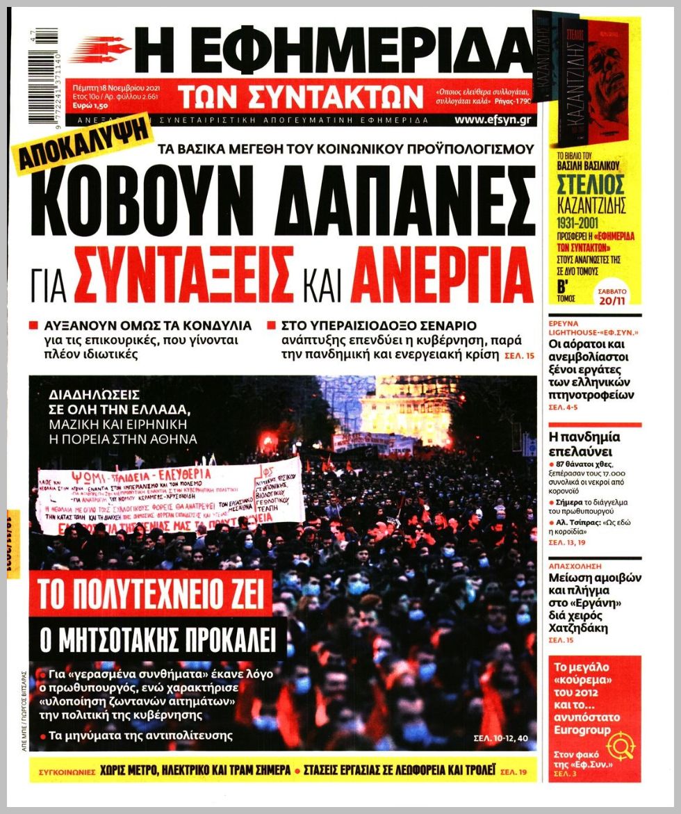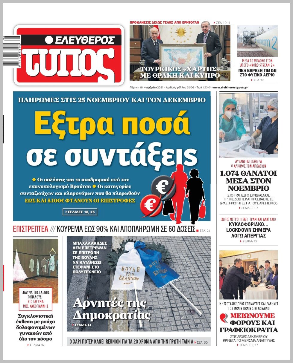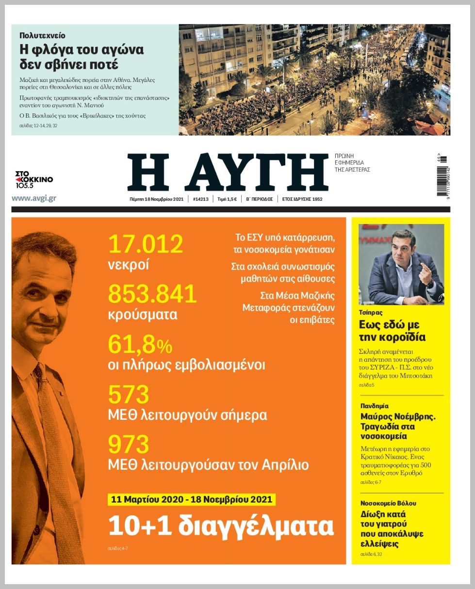 Τα πολιτικά πρωτοσέλιδα σήμερα (18/11)