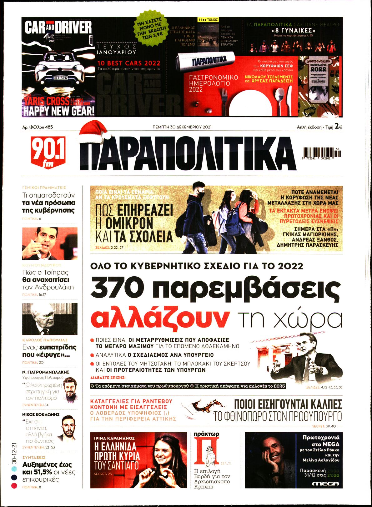 Τα πολιτικά πρωτοσέλιδα σήμερα (30/12)