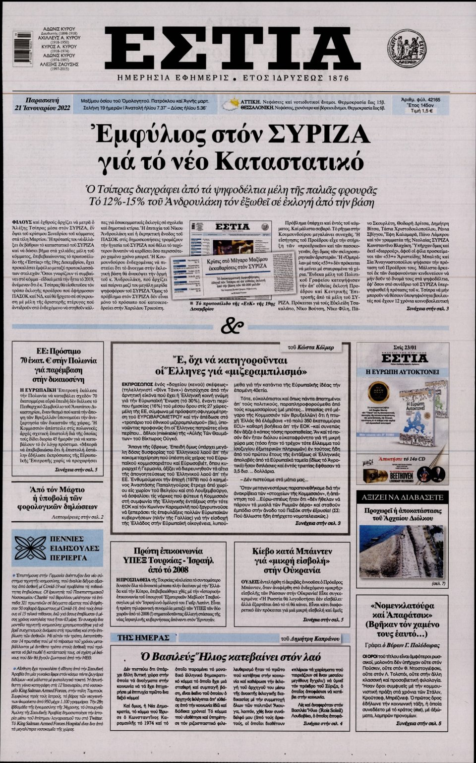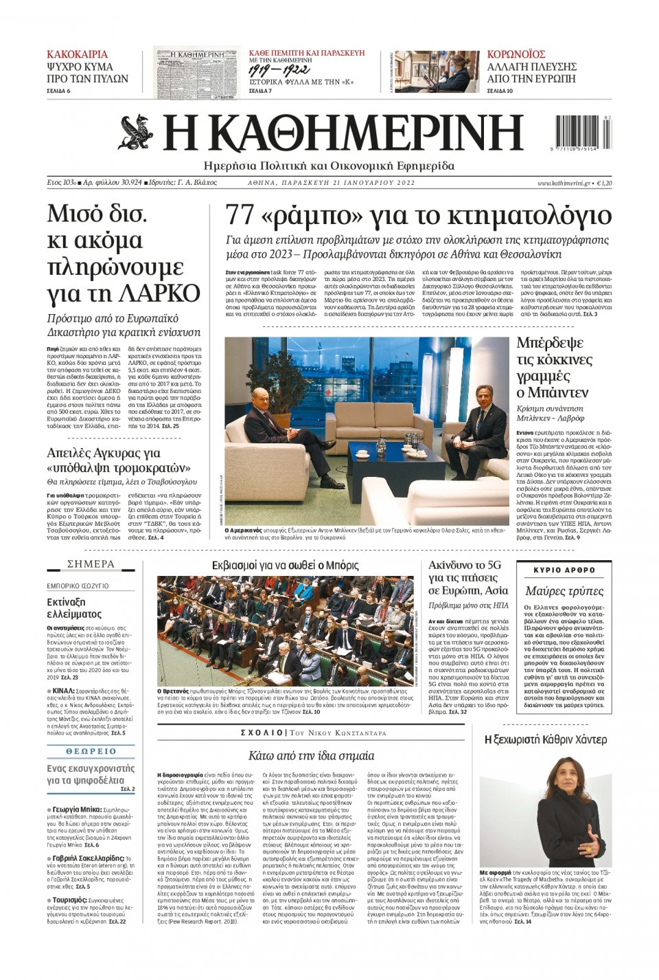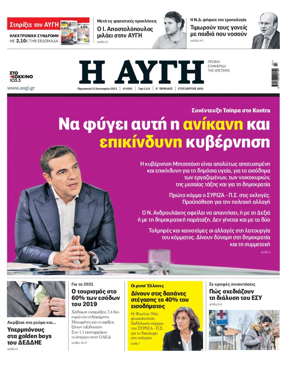Τα πολιτικά πρωτοσέλιδα σήμερα (21/1)