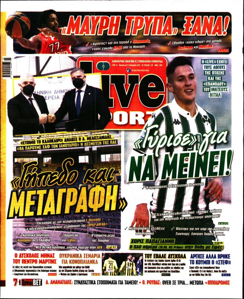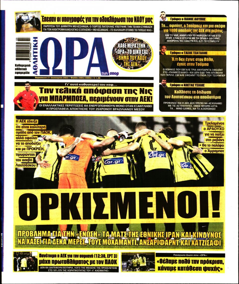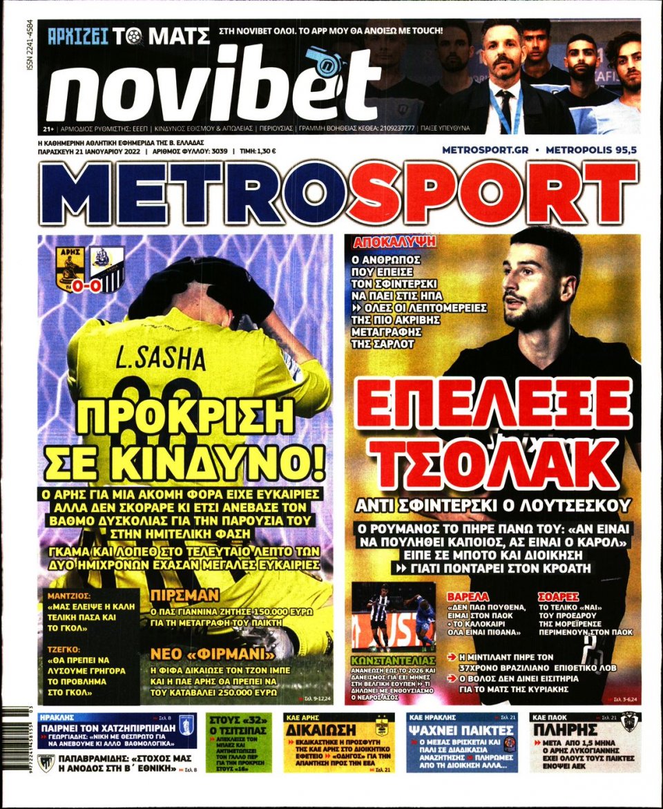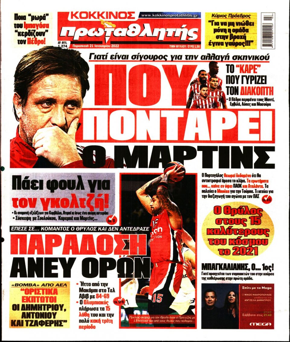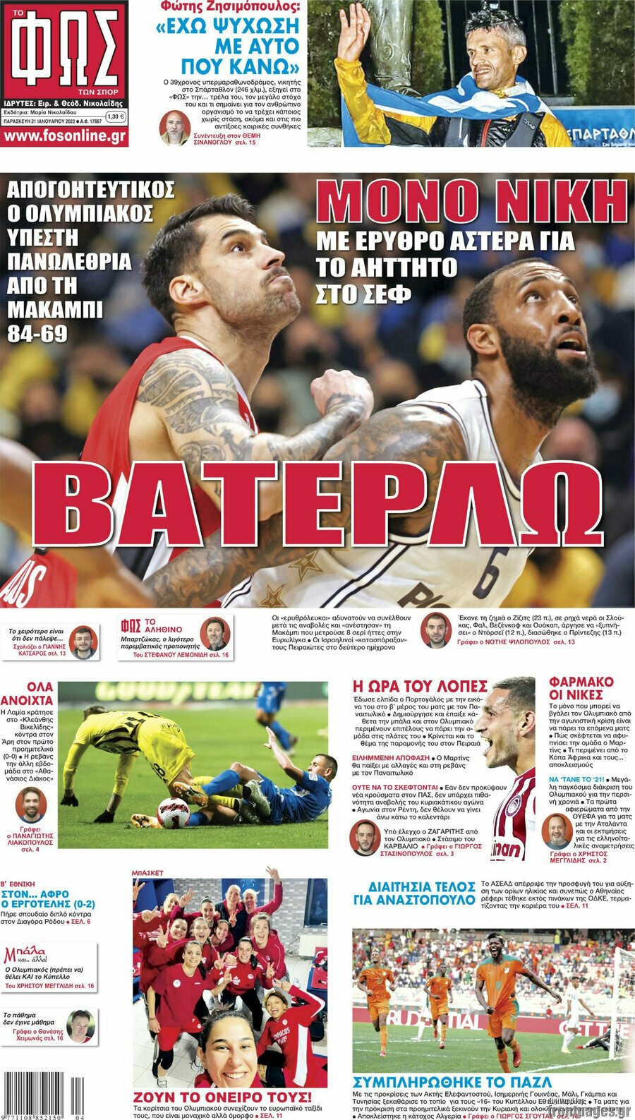 Τα αθλητικά πρωτοσέλιδα σήμερα (21/1)