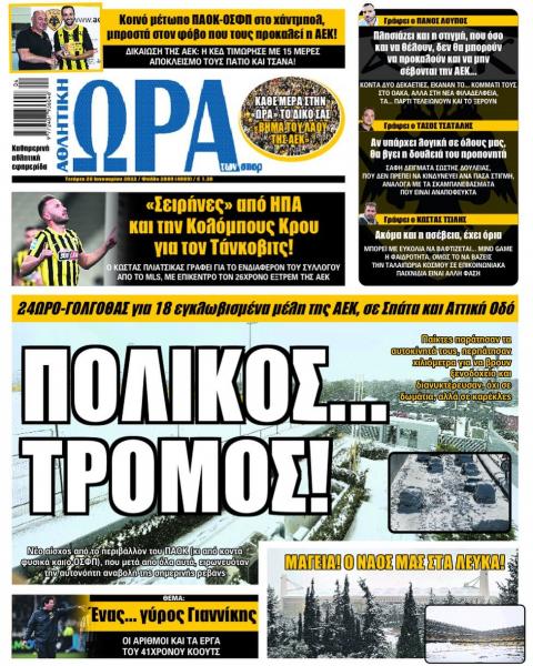 Τα αθλητικά πρωτοσέλιδα σήμερα (26/1)