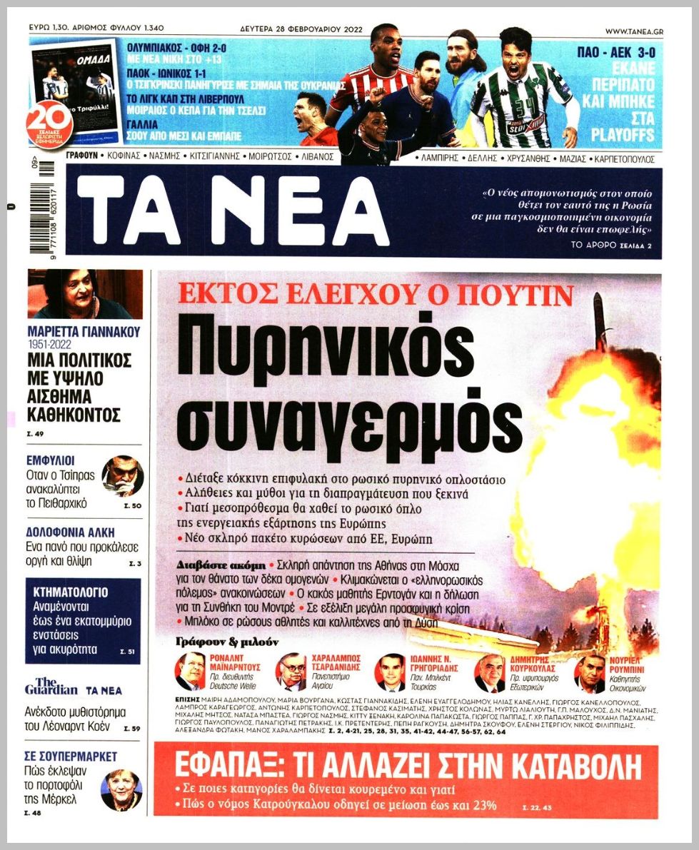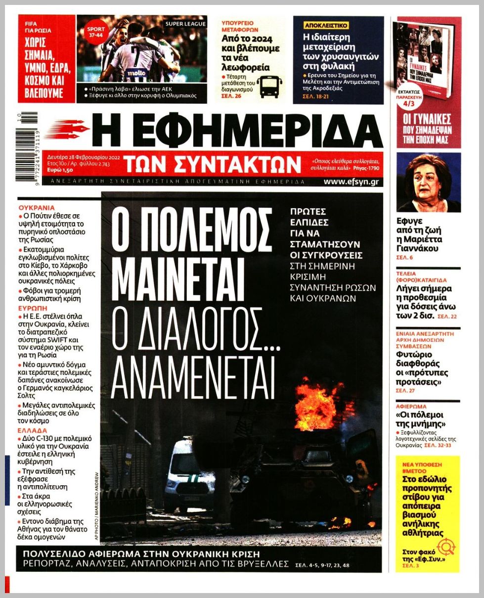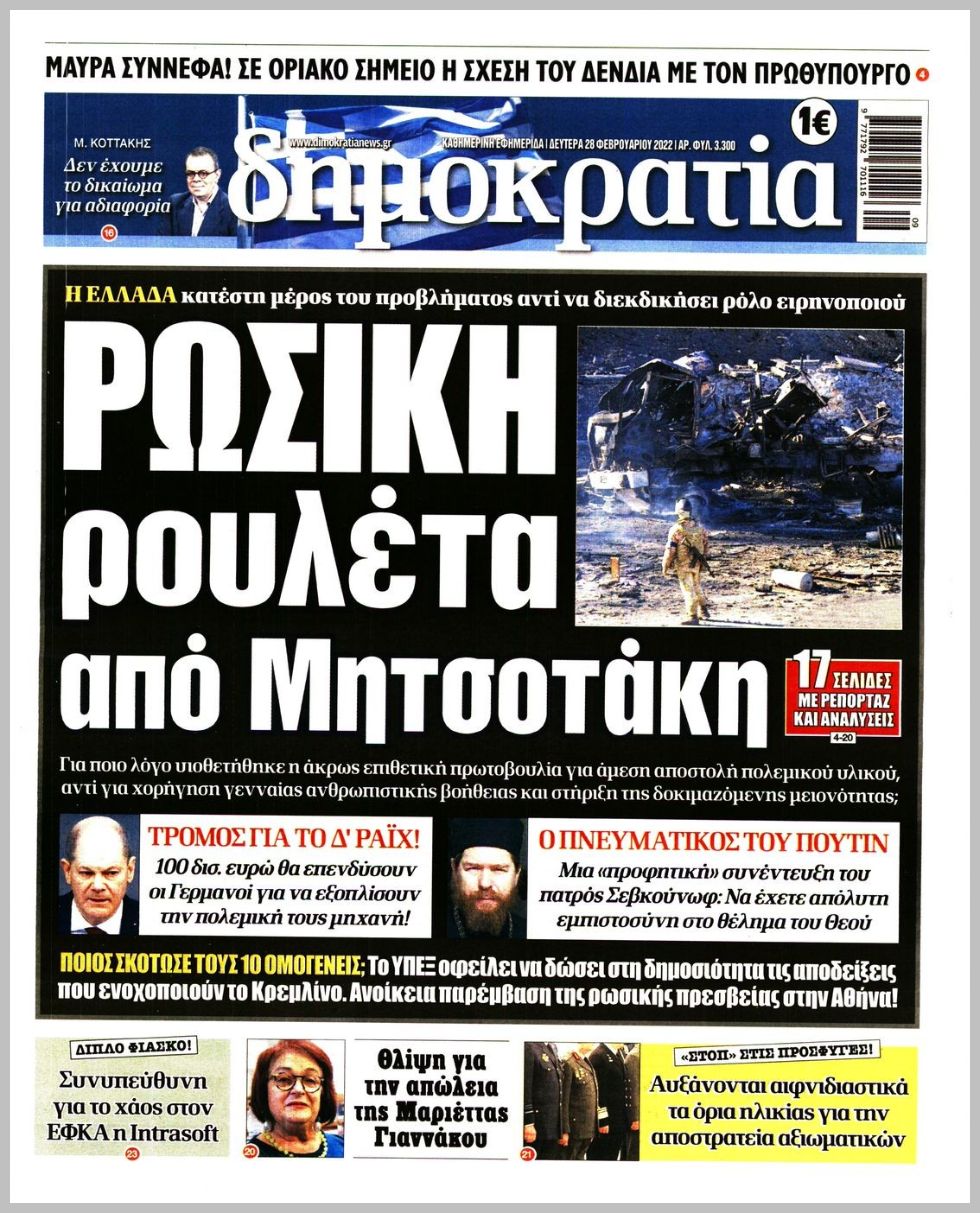 Τα πολιτικά πρωτοσέλιδα σήμερα (28/2)