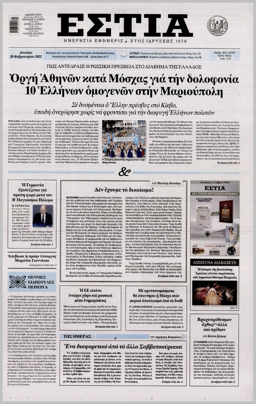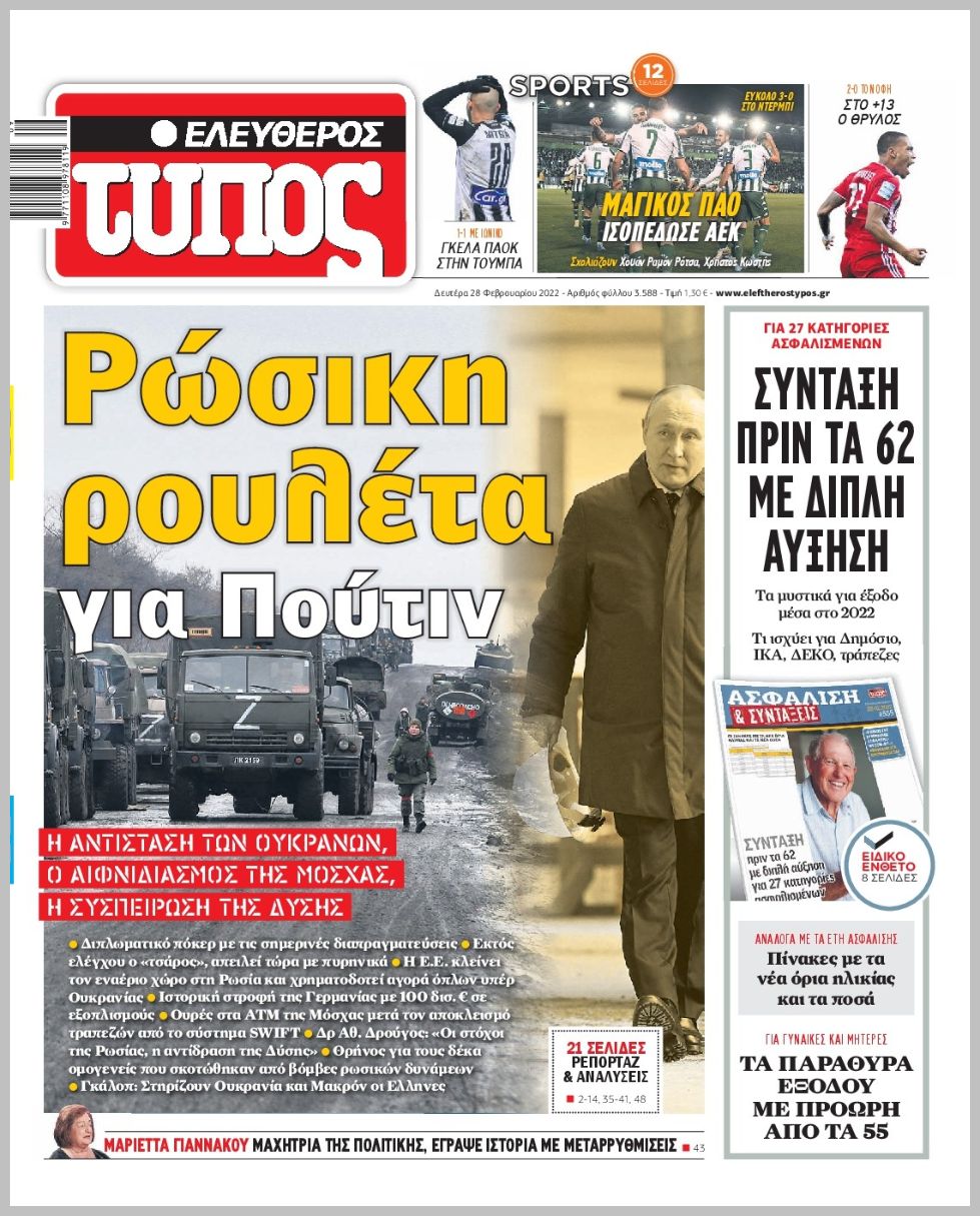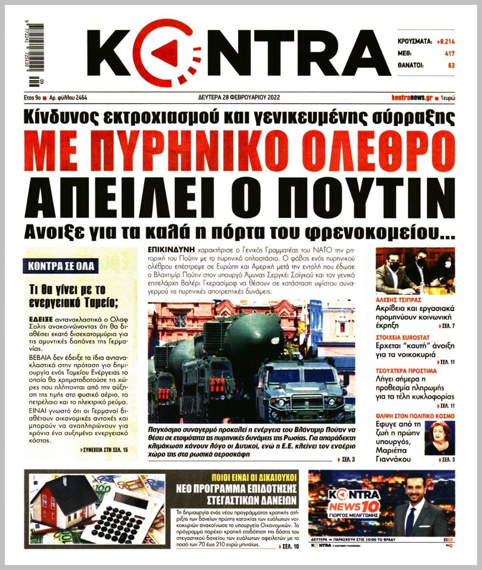 Τα πολιτικά πρωτοσέλιδα σήμερα (28/2)
