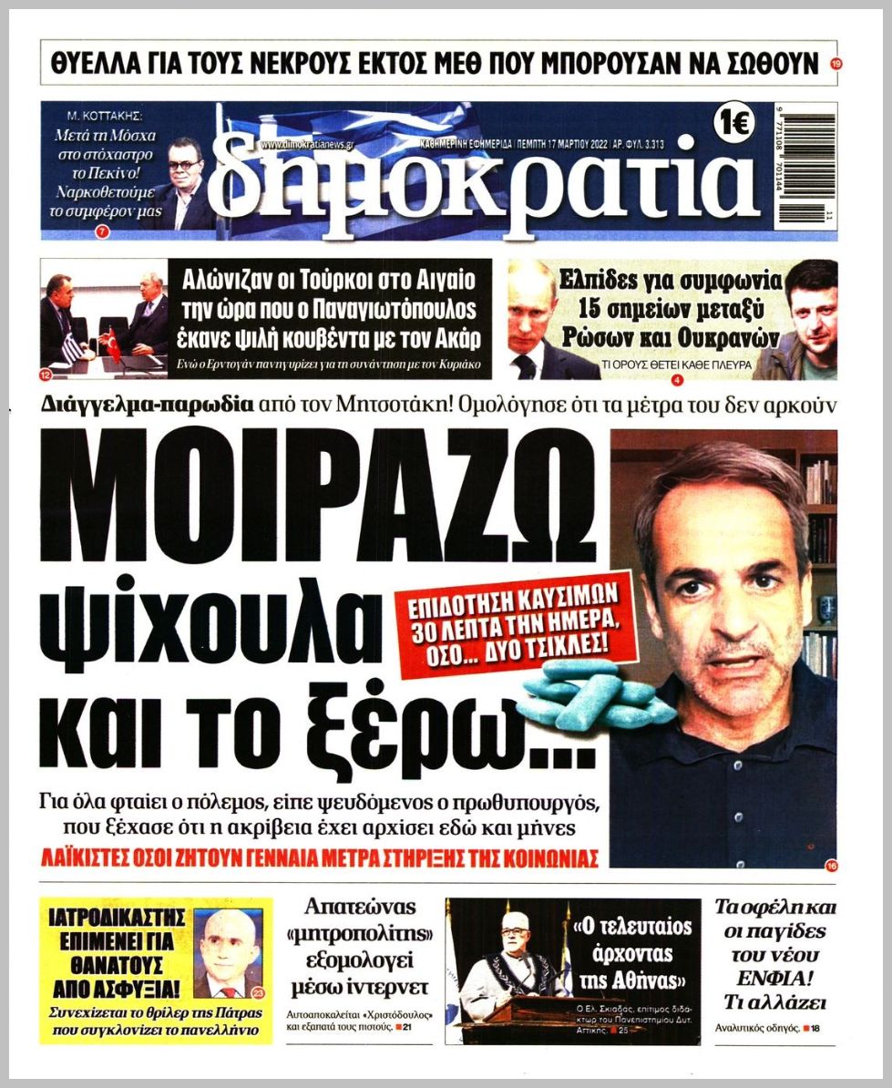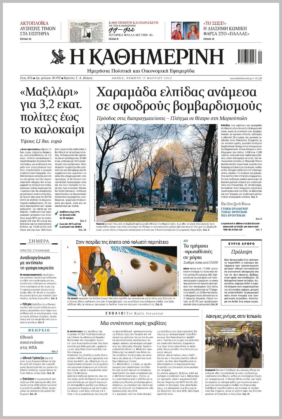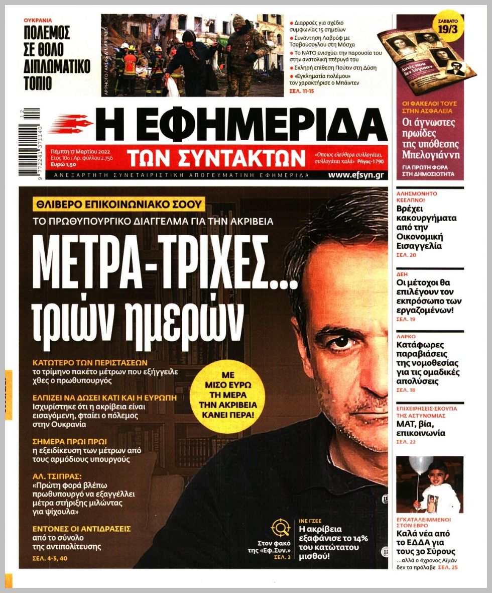 Τα πολιτικά πρωτοσέλιδα σήμερα (17/3)