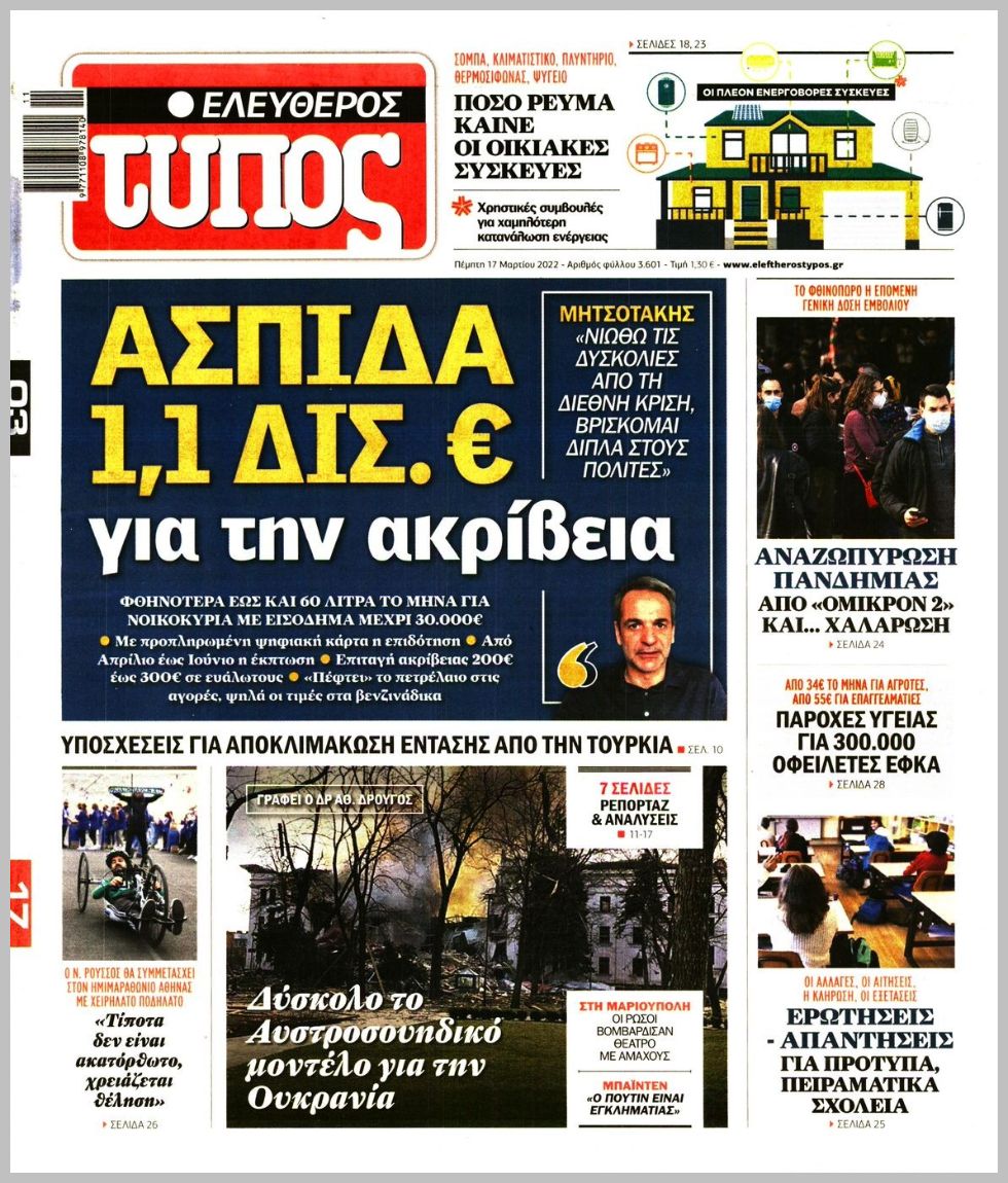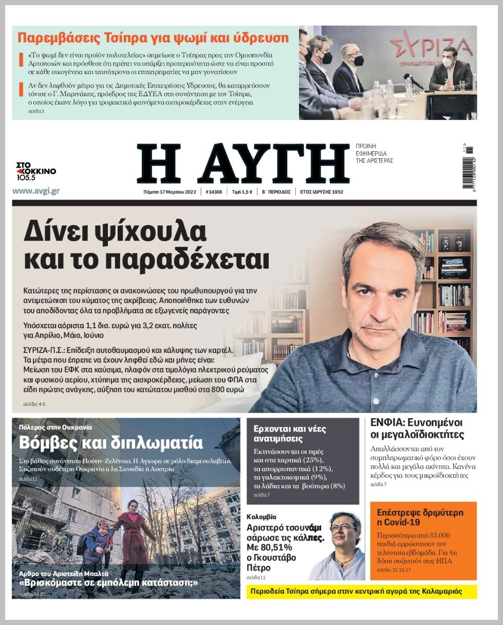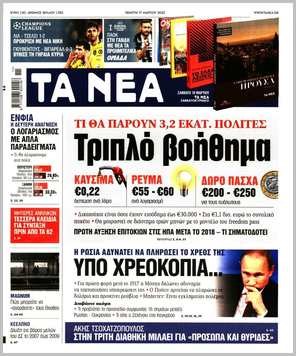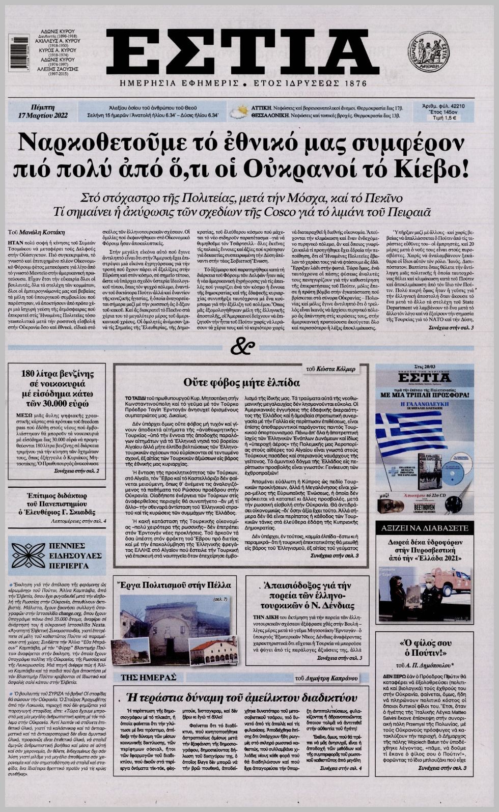 Τα πολιτικά πρωτοσέλιδα σήμερα (17/3)