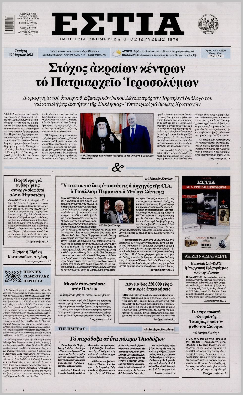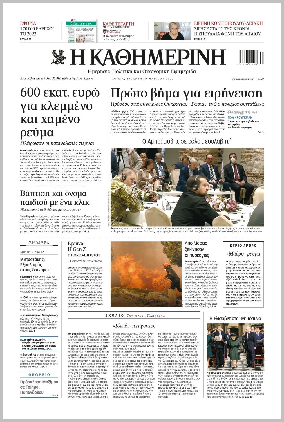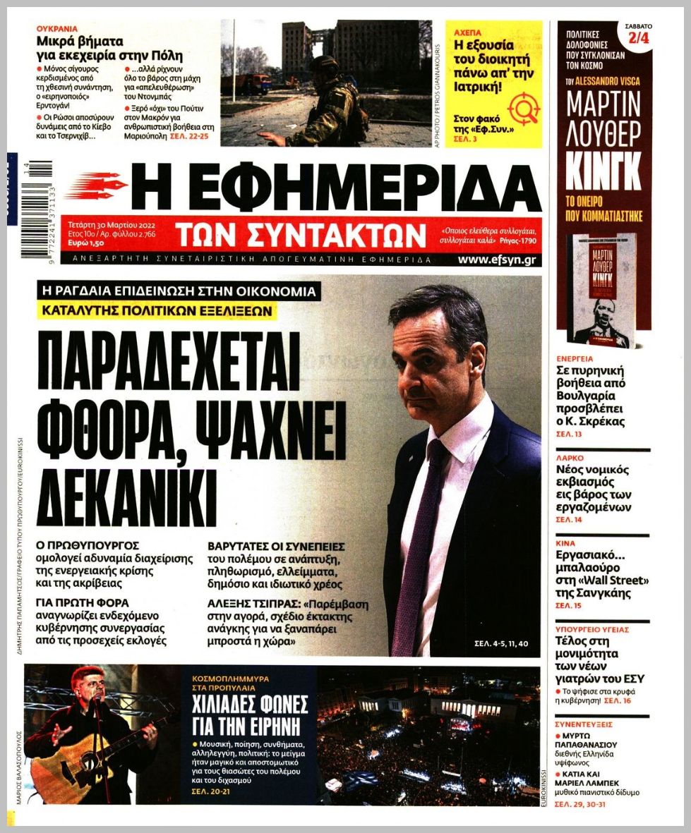Τα πολιτικά πρωτοσέλιδα σήμερα (30/3)