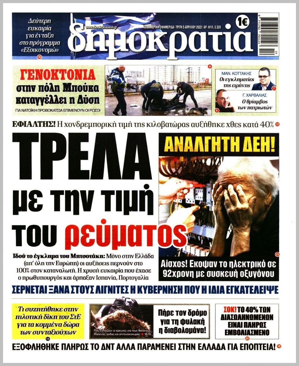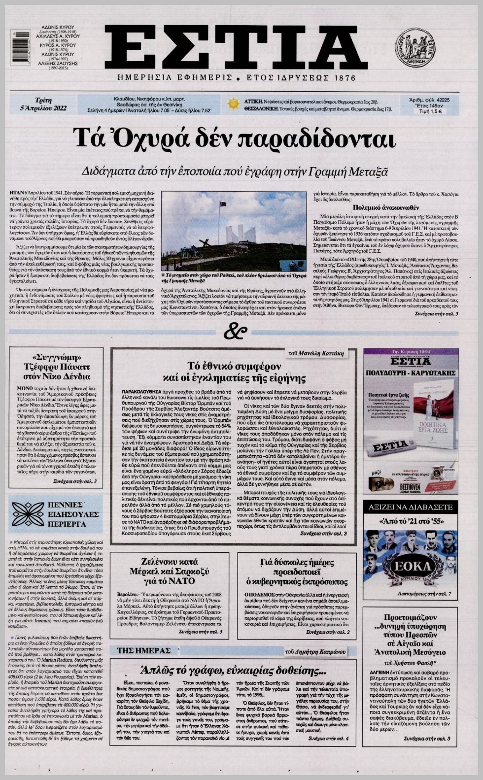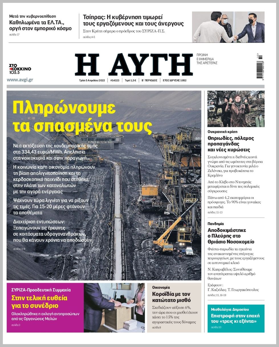 Τα πολιτικά πρωτοσέλιδα σήμερα (5/4)