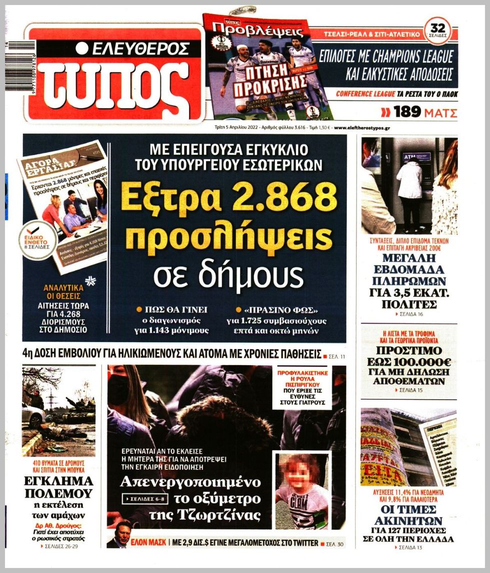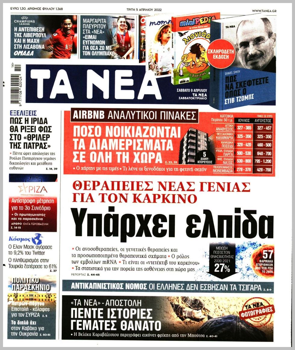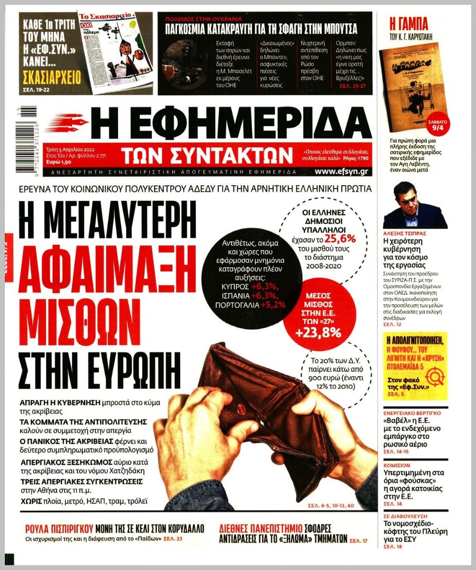 Τα πολιτικά πρωτοσέλιδα σήμερα (5/4)
