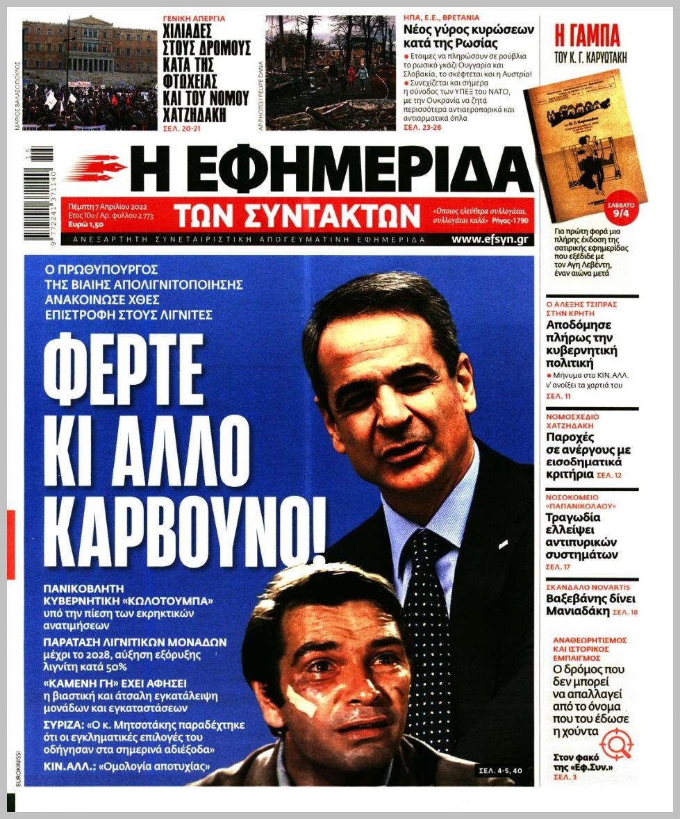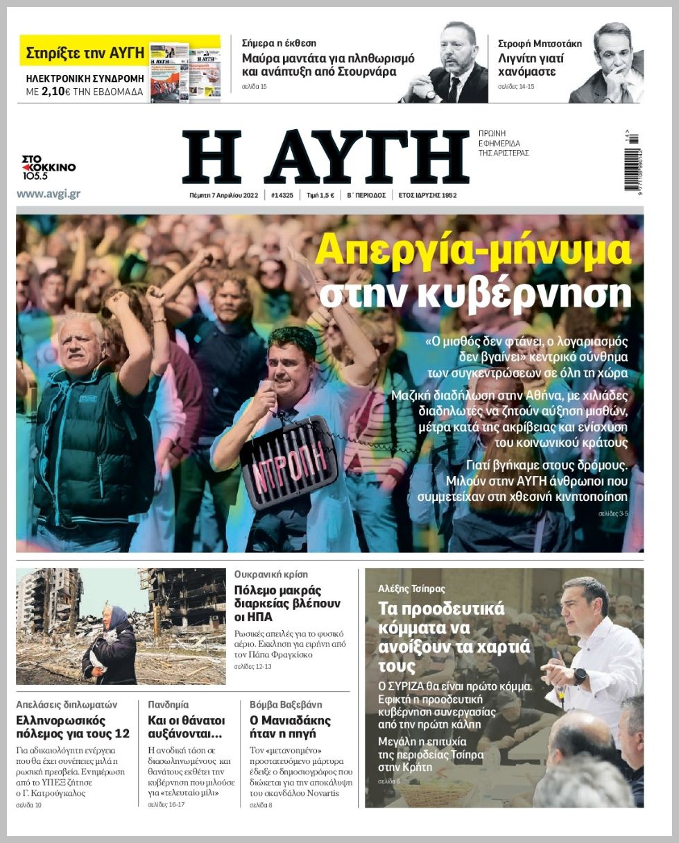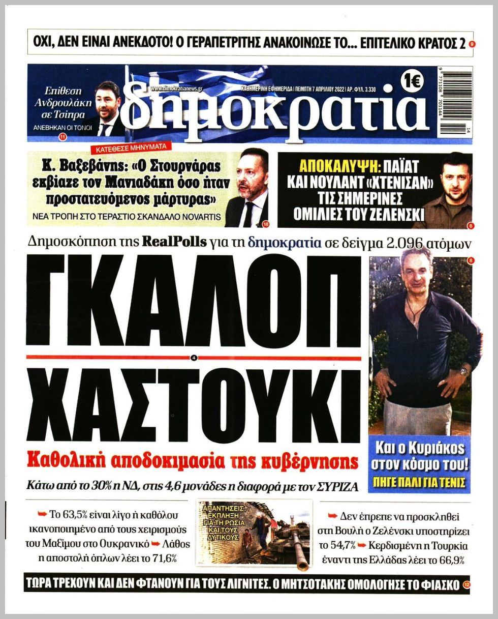 Τα πολιτικά πρωτοσέλιδα σήμερα (7/4)
