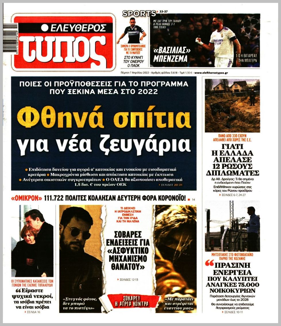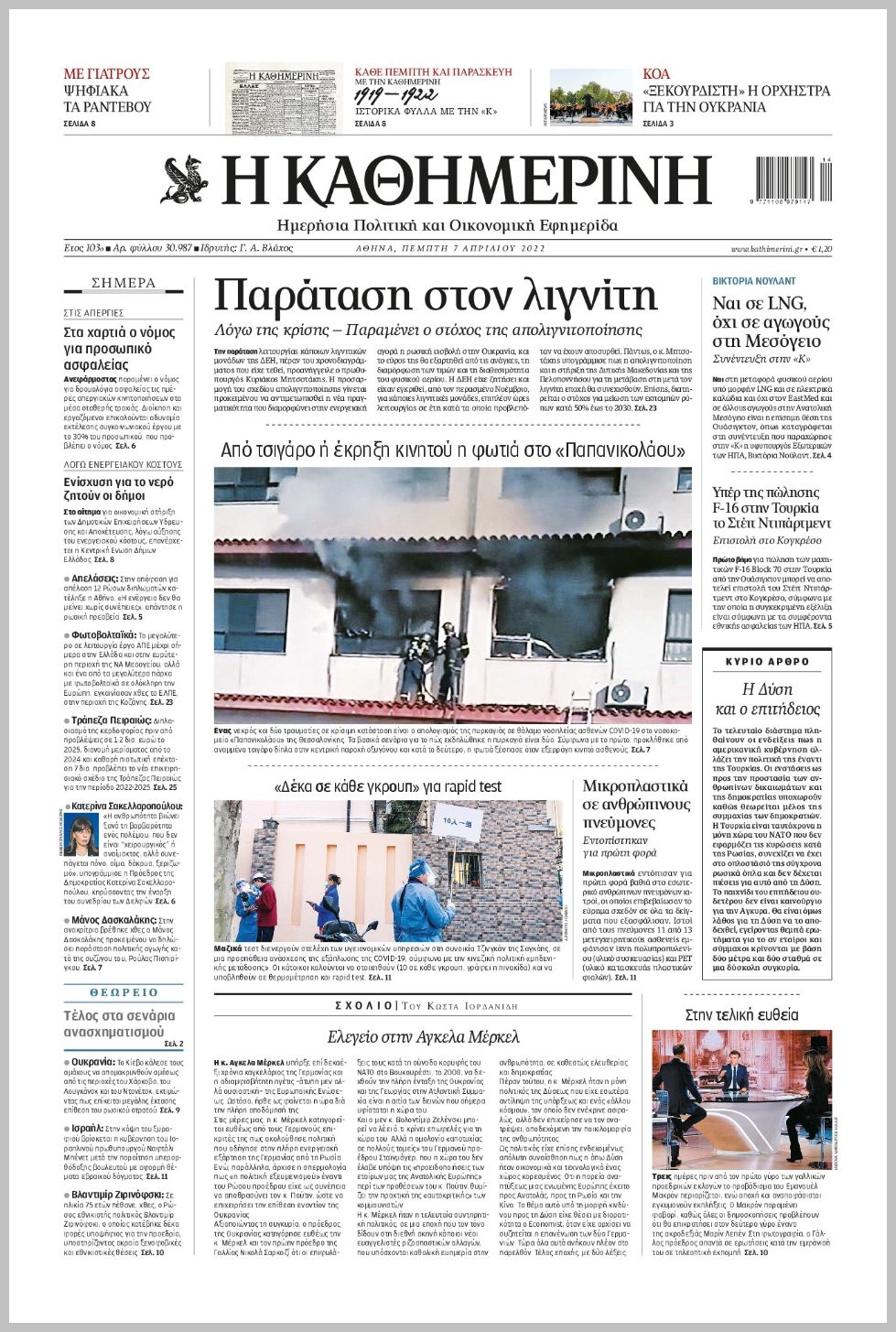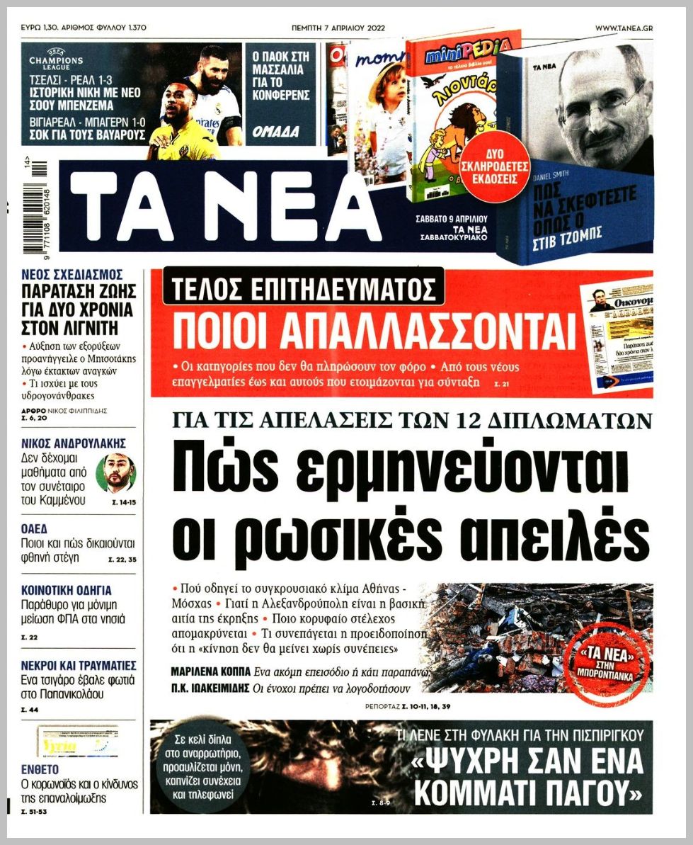 Τα πολιτικά πρωτοσέλιδα σήμερα (7/4)