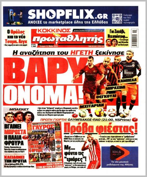 Τα αθλητικά πρωτοσέλιδα σήμερα (11/5)