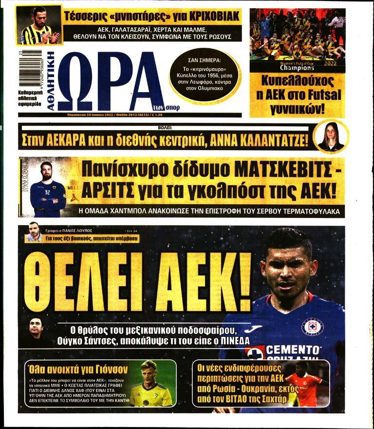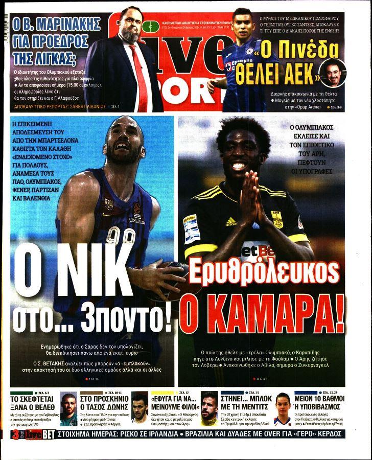 Τα αθλητικά πρωτοσέλιδα σήμερα (24/6)