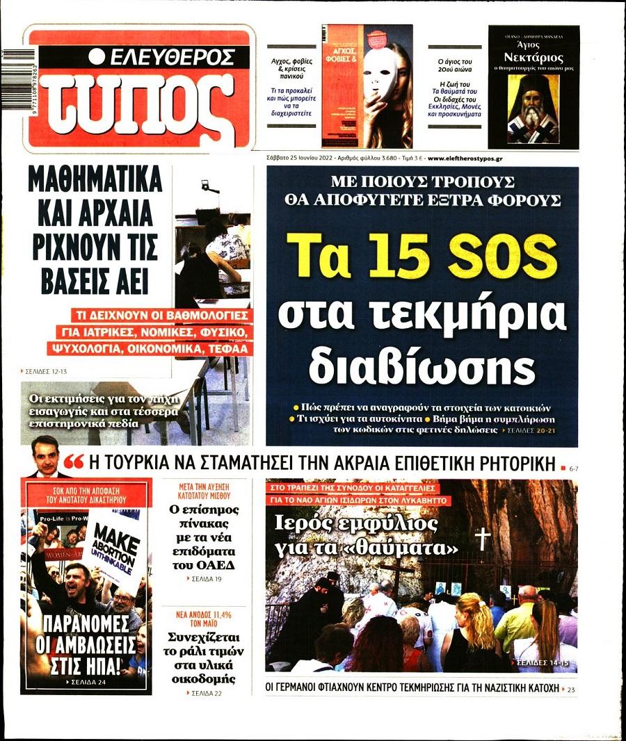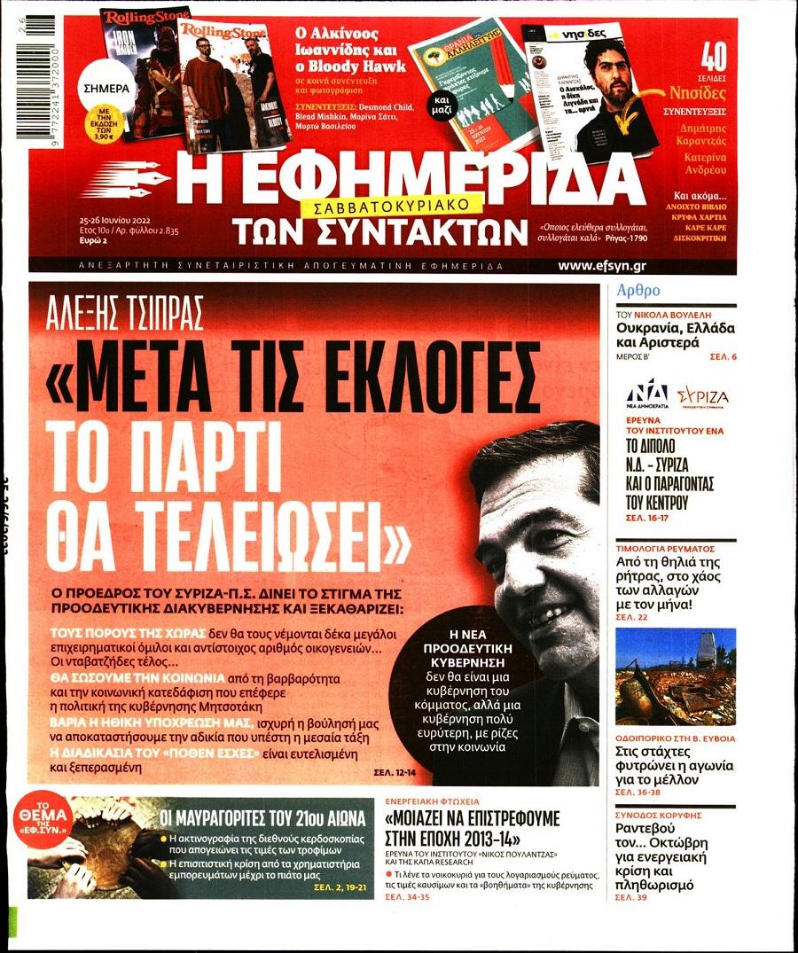 Τα πολιτικά πρωτοσέλιδα σήμερα (25/6)