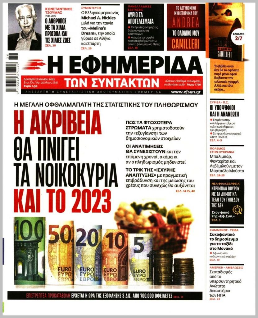 Τα πολιτικά πρωτοσέλιδα σήμερα (27/6)