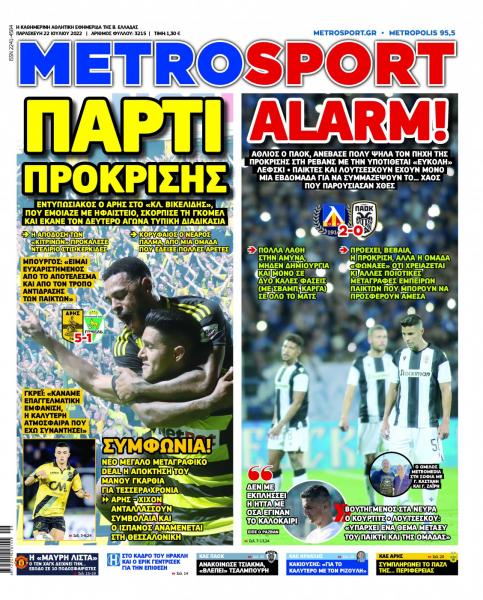 Τα αθλητικά πρωτοσέλιδα σήμερα (22/7)