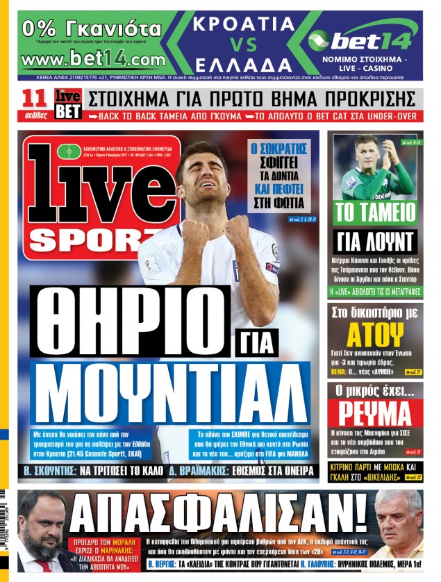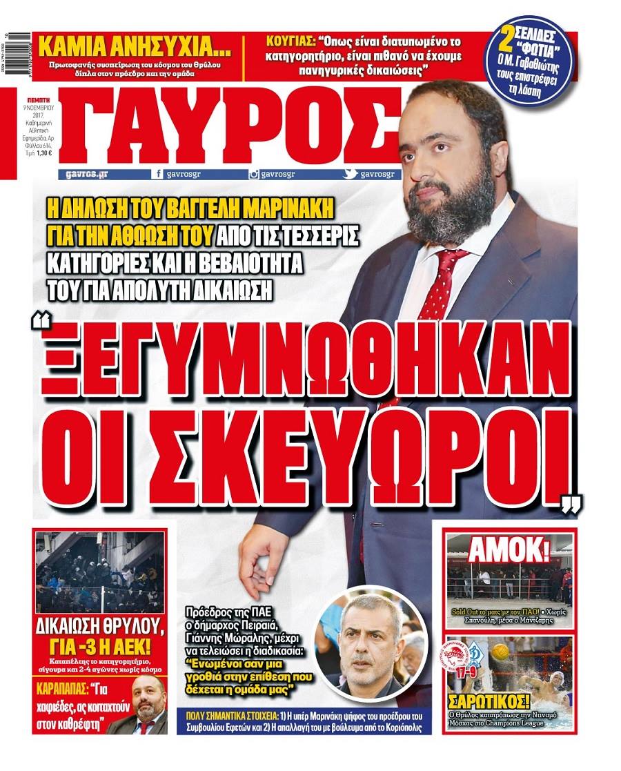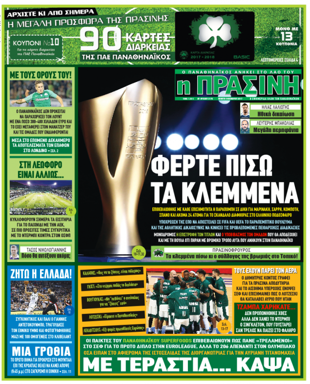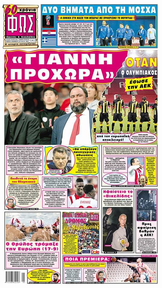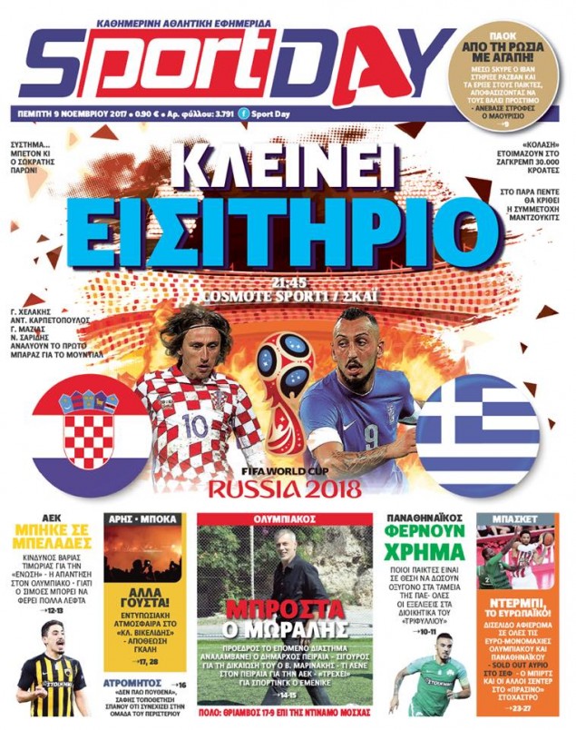 Διαβάστε τα πρωτοσέλιδα των αθλητικών εφημερίδων της Πέμπτης (9/11).