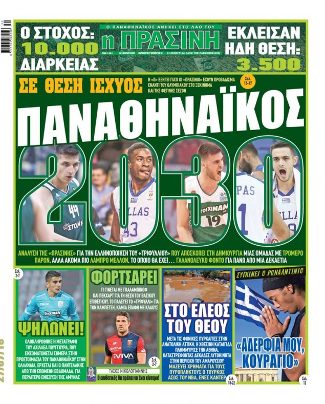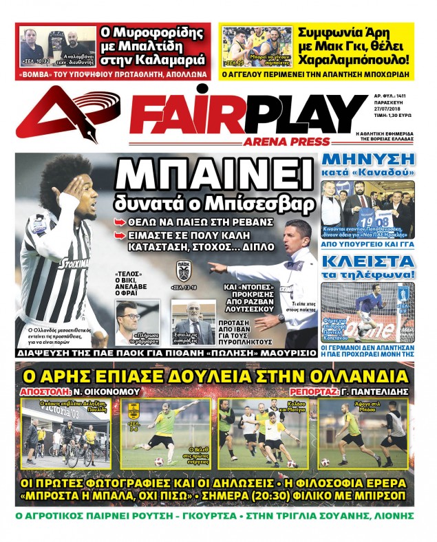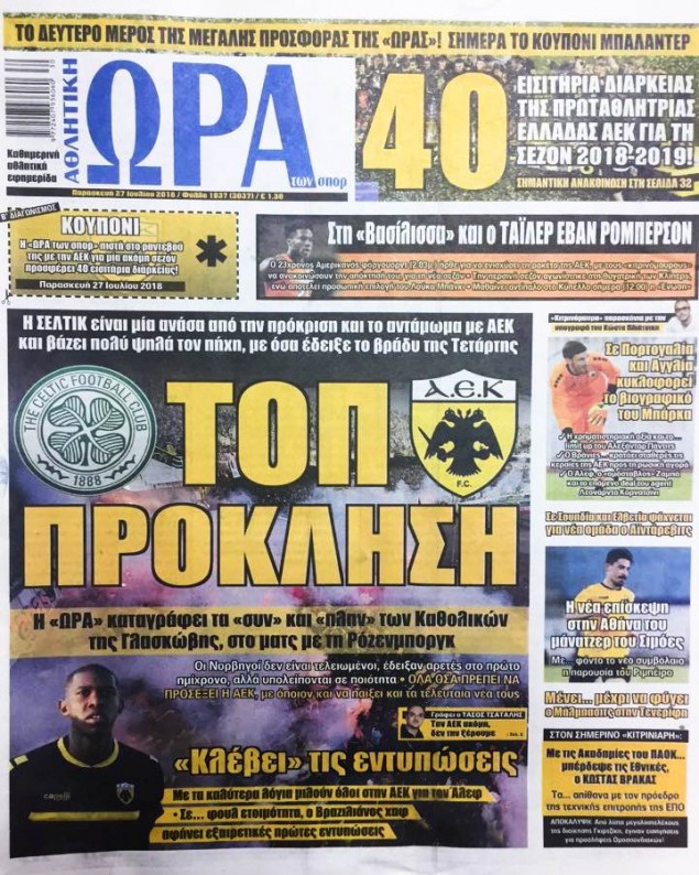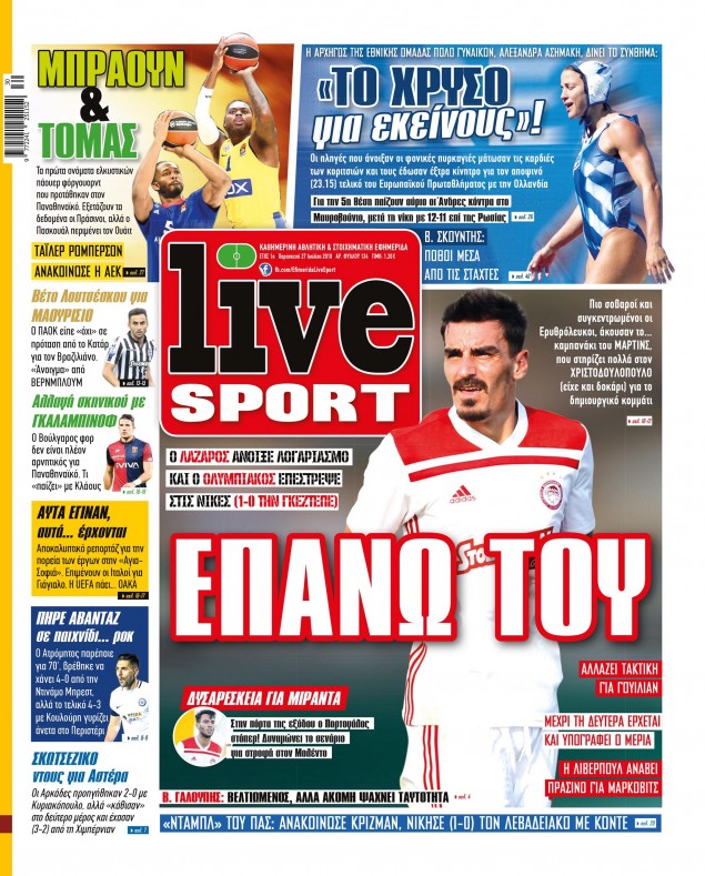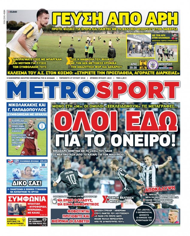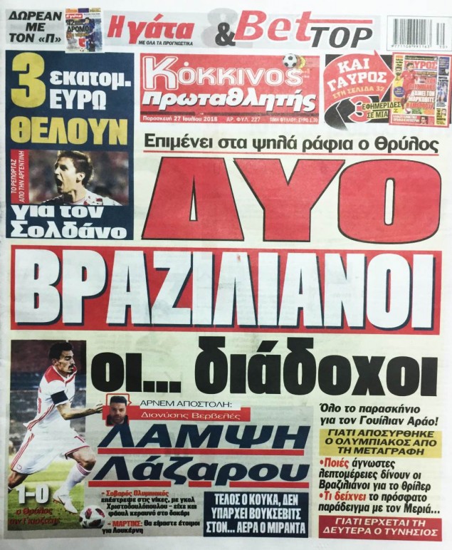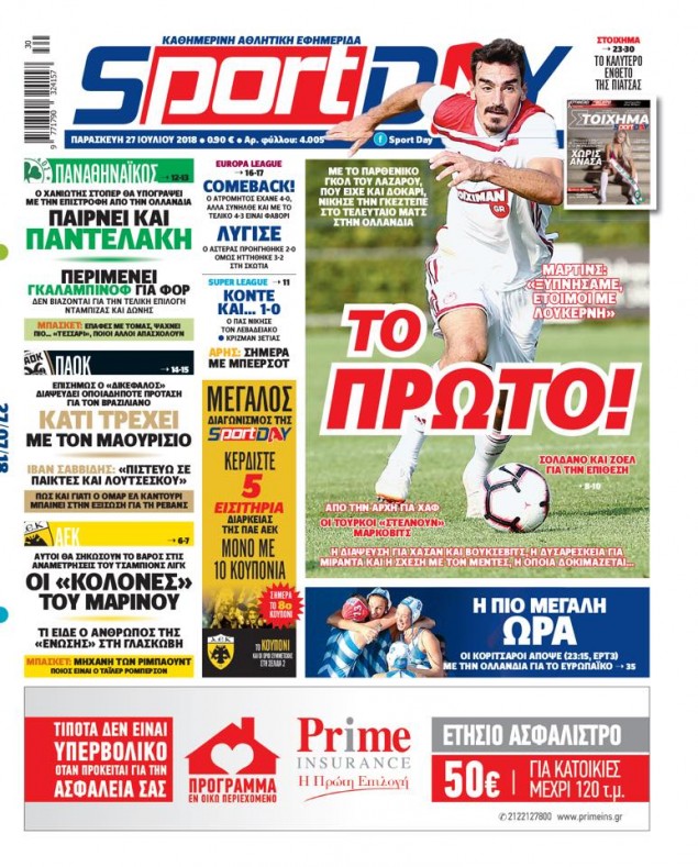 Διαβάστε τα πρωτοσέλιδα των αθλητικών εφημερίδων για σήμερα Παρασκευή (27/7).