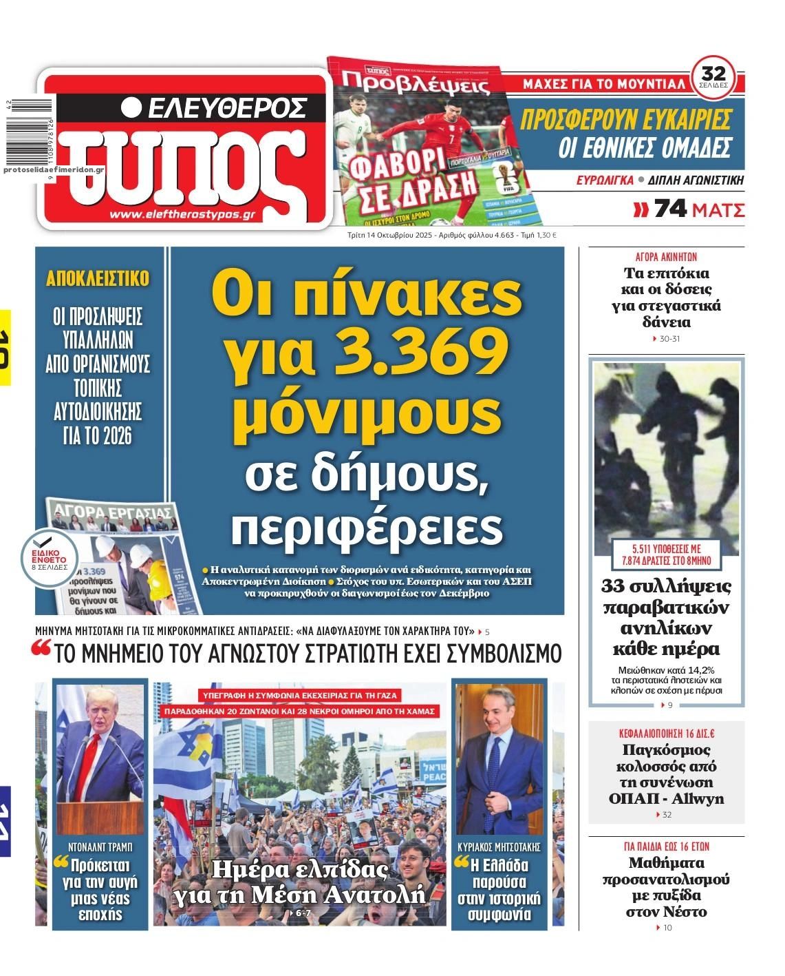14/10/2025 09:01 Οι αθλητικές μεταδόσεις της ημέρας (14/10): Πού θα δείτε το Ολυμπιακός - Εφές και τα ευρωπαϊκά ματς των Άρη, Καρδίτσας