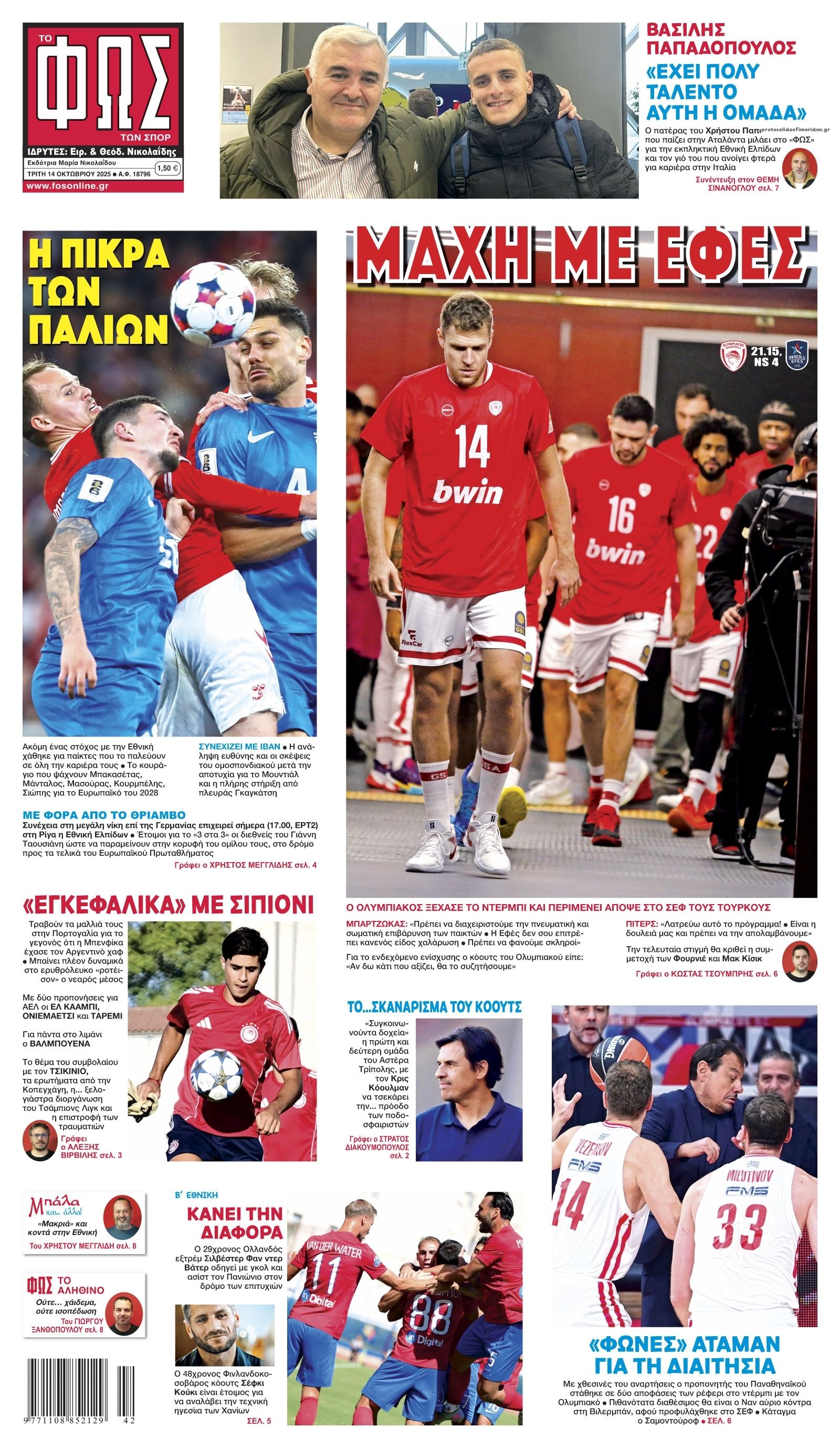14/10/2025 09:01 Οι αθλητικές μεταδόσεις της ημέρας (14/10): Πού θα δείτε το Ολυμπιακός - Εφές και τα ευρωπαϊκά ματς των Άρη, Καρδίτσας