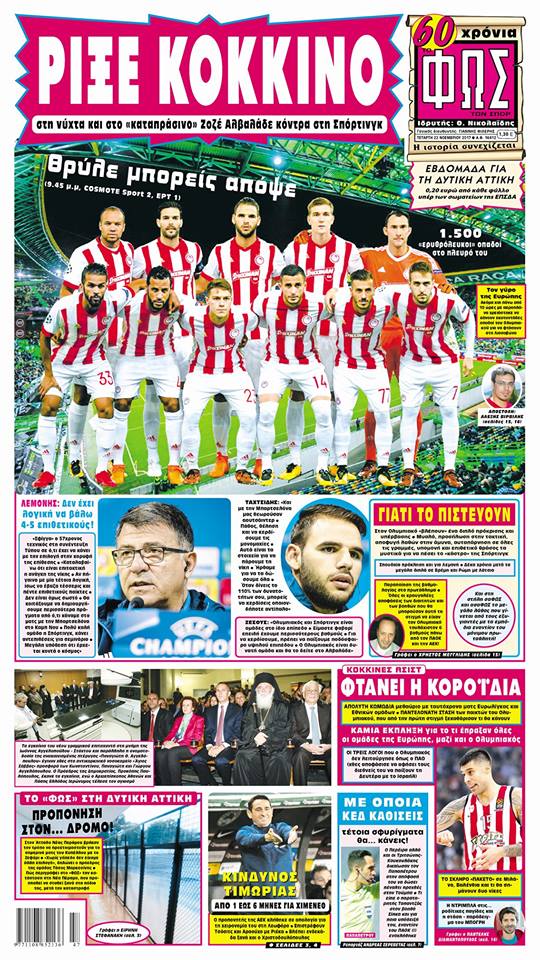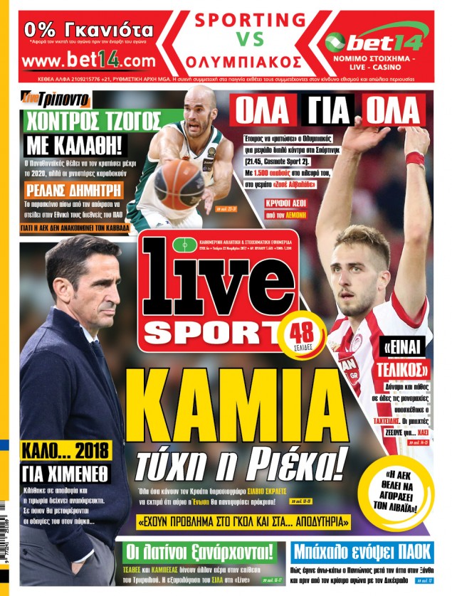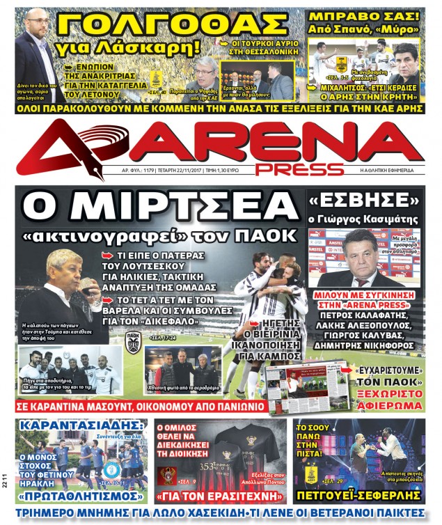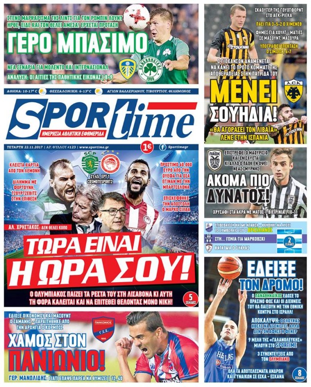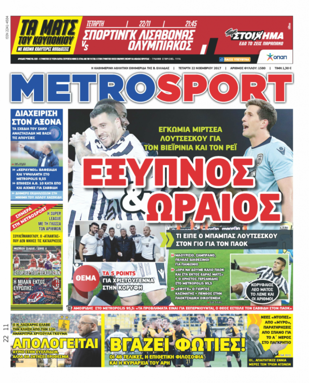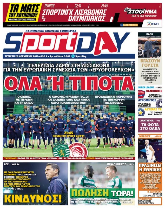 Διαβάστε τα πρωτοσέλιδα των αθλητικών εφημερίδων για σήμερα Τετάρτη (22/11).