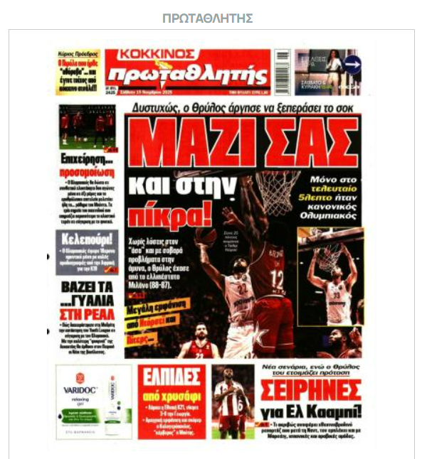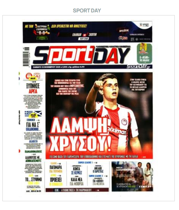 14/11/2025 08:28 Οι αθλητικές μεταδόσεις της ημέρας (14/11): Πού θα δείτε Μιλάνο – Ολυμπιακός και τη μάχη της Εθνικής Κ21