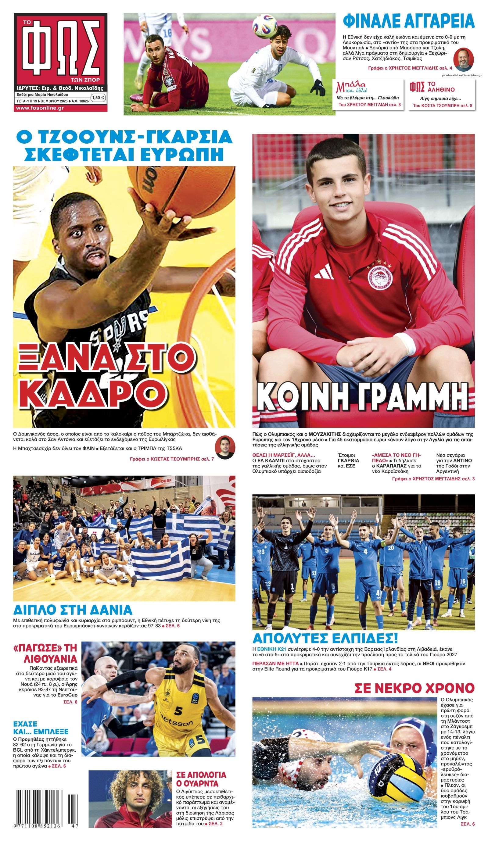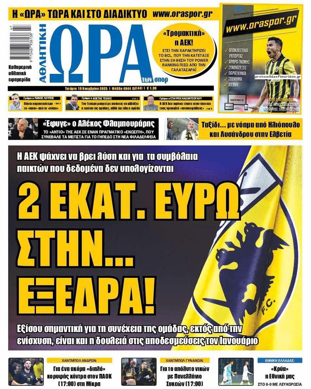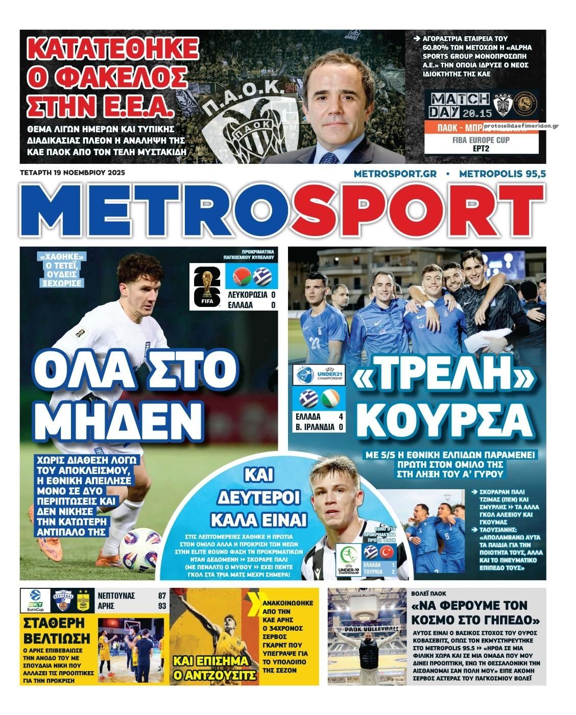 19/11/2025 08:39 Οι αθλητικές μεταδόσεις της ημέρας (19/11): Πού θα δείτε τις ευρωπαϊκές «μάχες» των ελληνικών ομάδων