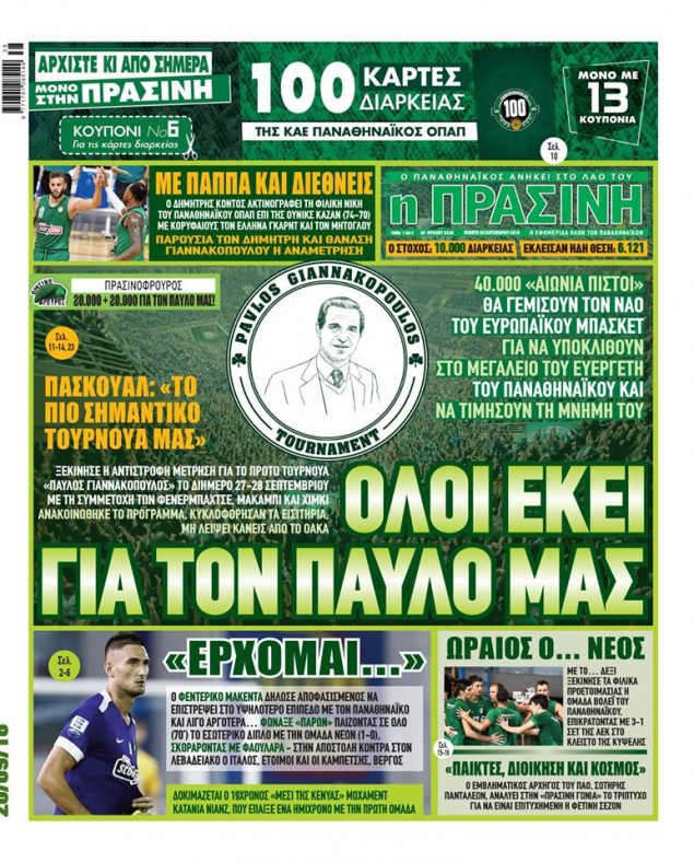 Διαβάστε τα πρωτοσέλιδα των αθλητικών εφημερίδων για σήμερα Πέμπτη 20/9.