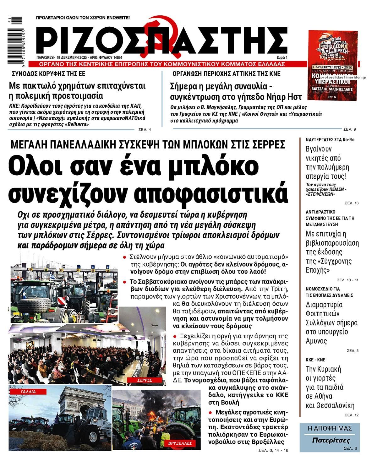19/12/2025 08:13 Βήμα – βήμα οι επόμενες κινήσεις των αγροτών – «Πάγωσε» ο διάλογος, «ζεστάθηκαν» τα μπλόκα