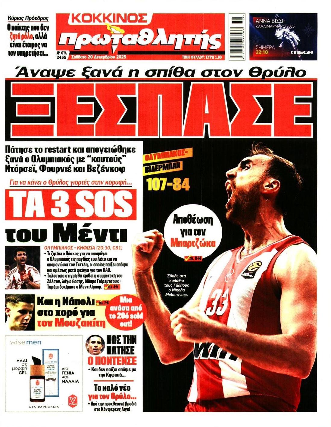 20/12/2025 08:41 Οι αθλητικές μεταδόσεις της ημέρας (20/12): Πού θα δείτε Ολυμπιακός-Κηφισιά και Παναθηναϊκός-Ηρακλής