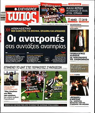 Δείτε καθημερινά από to10.gr όλα τα πρωτοσέλιδα των αθλητικών και πολιτικών εφημερίδων του ημερήσιου και εβδομαδιαίου Τύπου.